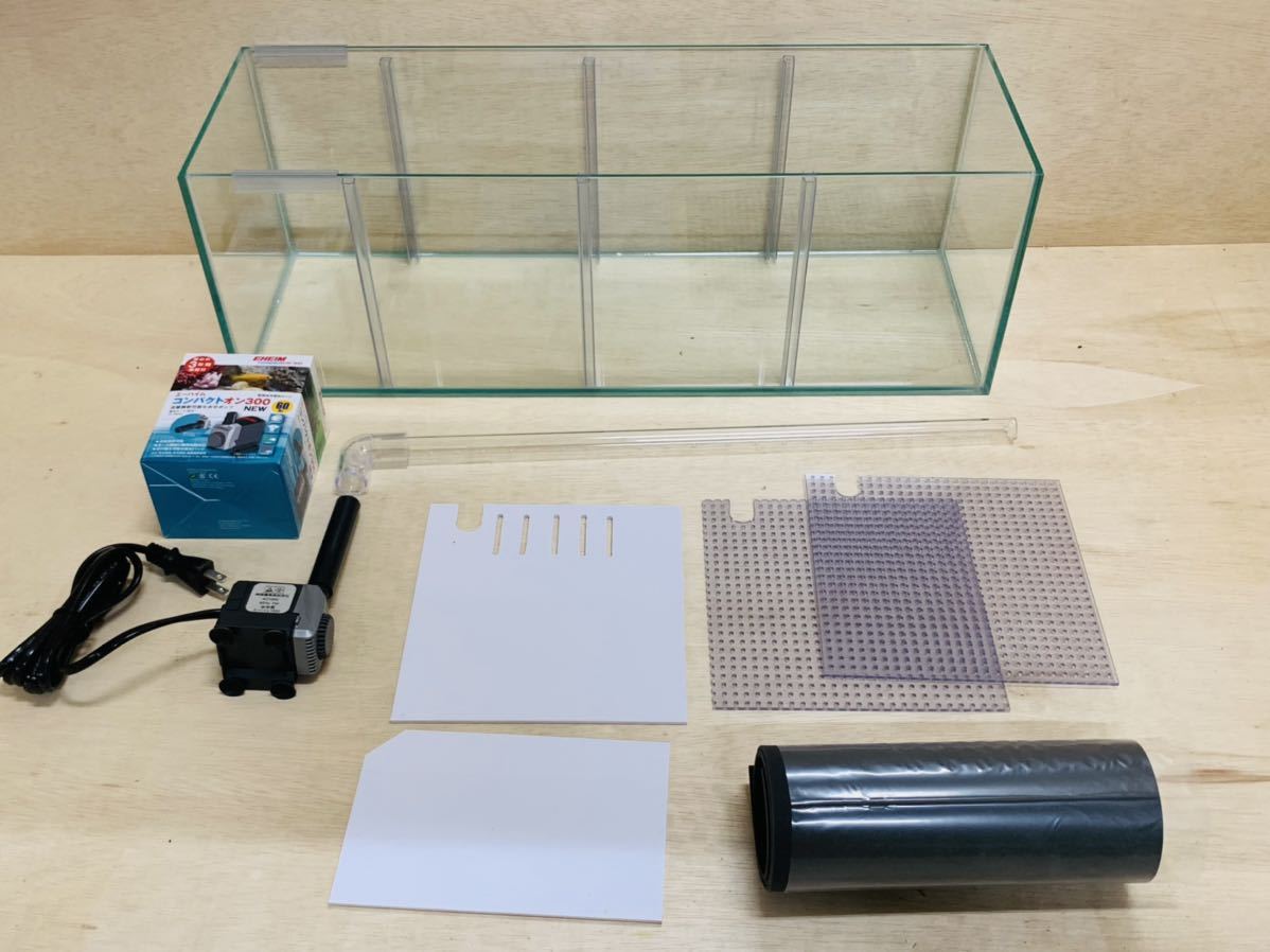 ◆水槽、ポンプともに未使用品です。多目的に使用できる600×200×200のカウンターサイズで仕切りも付属しておりますので飼育も繁殖も楽しめます。