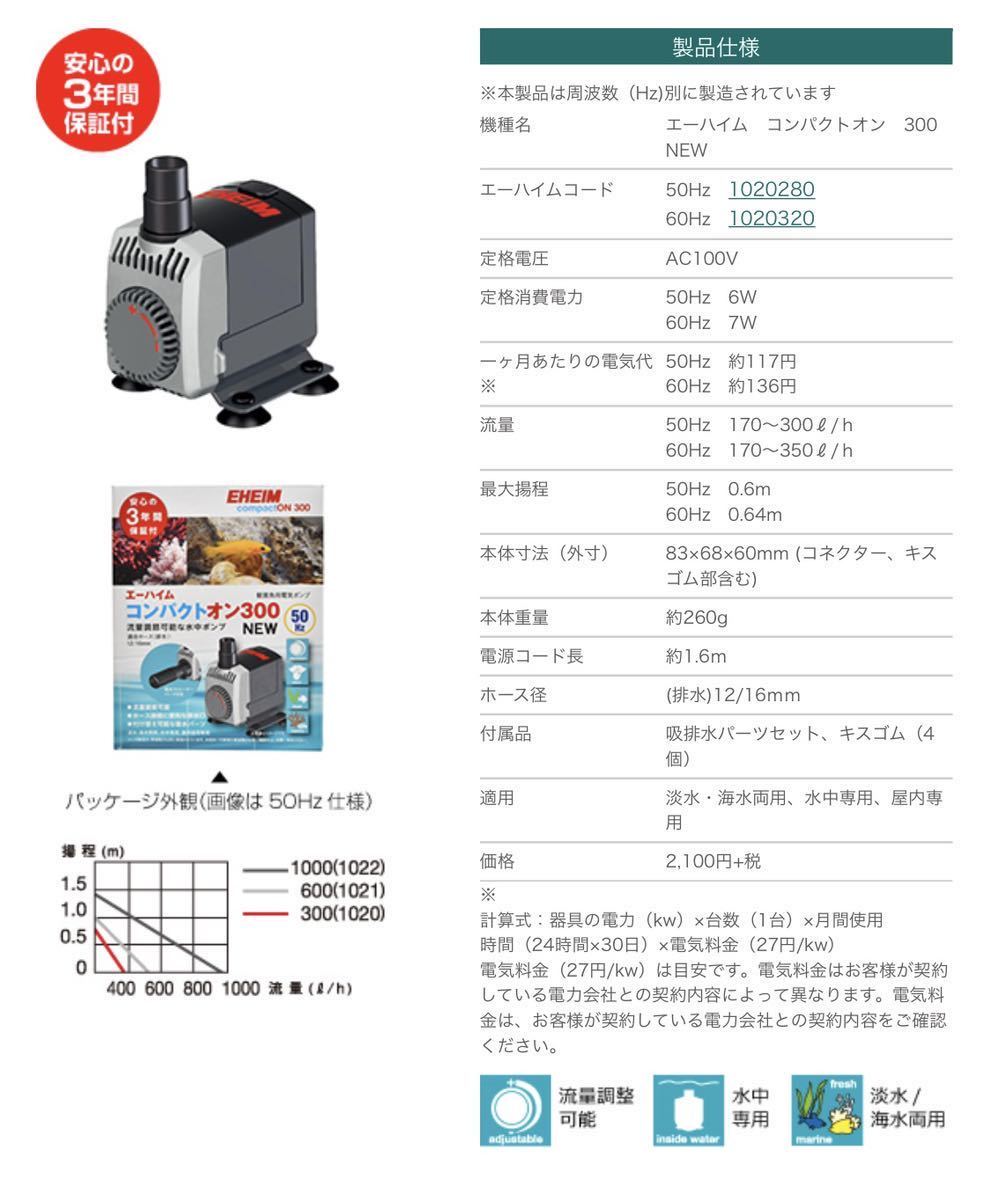 ※エーハイムコンパクトオン300は50Hz、60Hzがございますので落札後どちらが適応かお教え下さい。