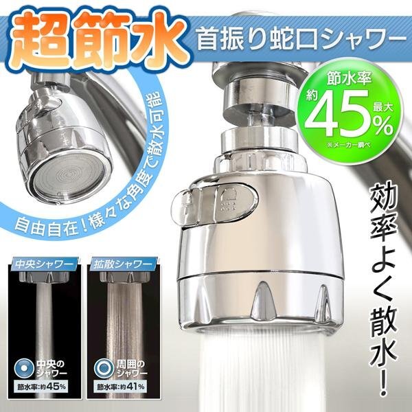 | 節水効果 最大約45% 超節水 首振り蛇口シャワー |