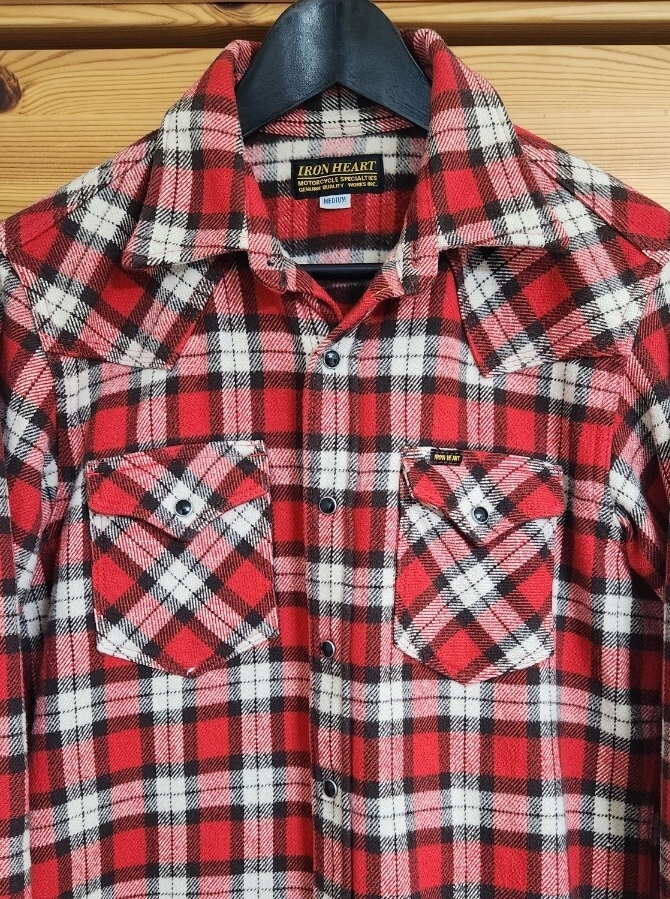 アイアンハートのチェック柄のフランネルウエスタンシャツです。