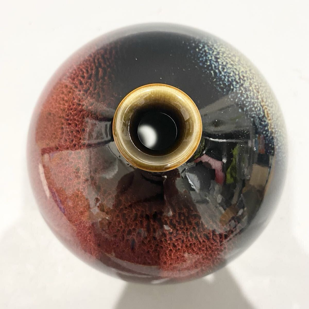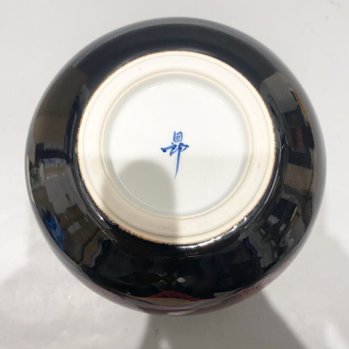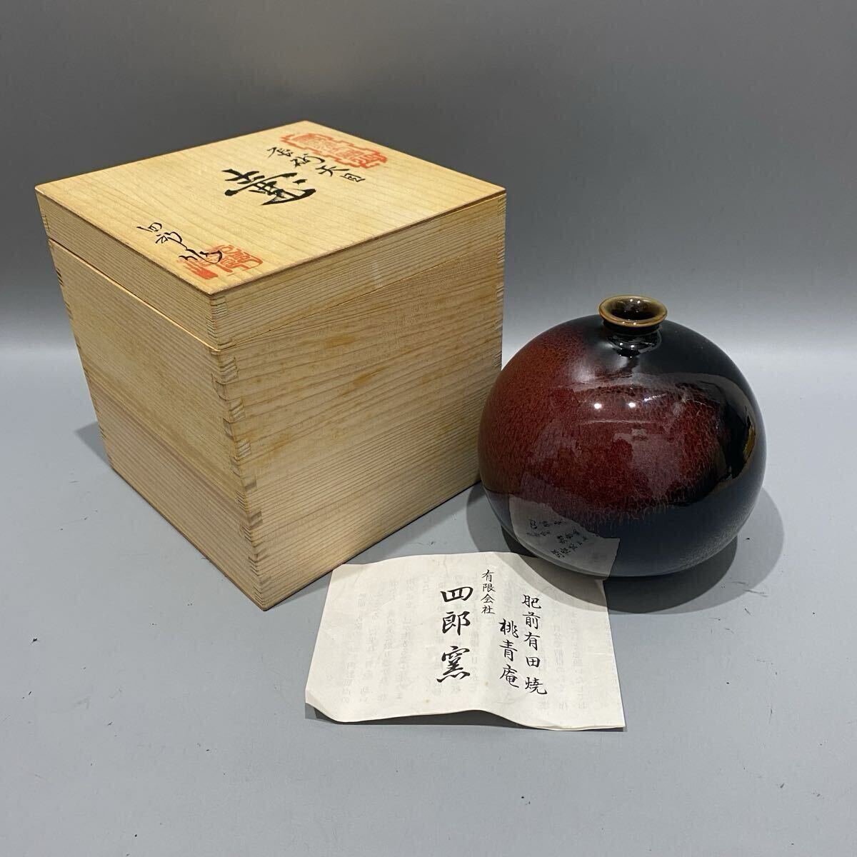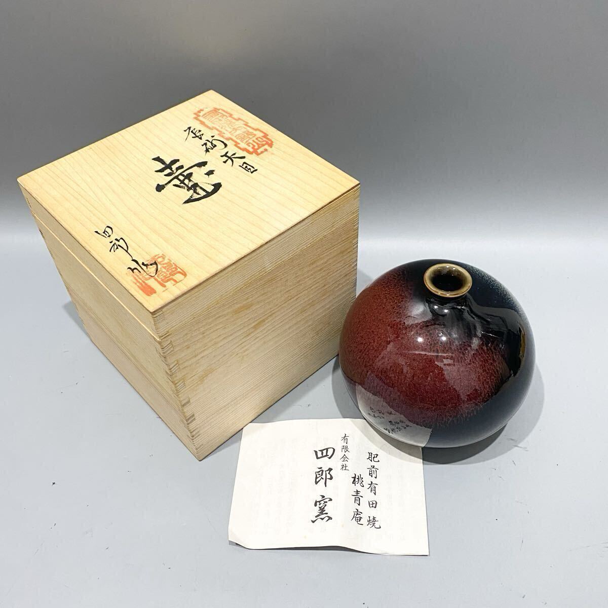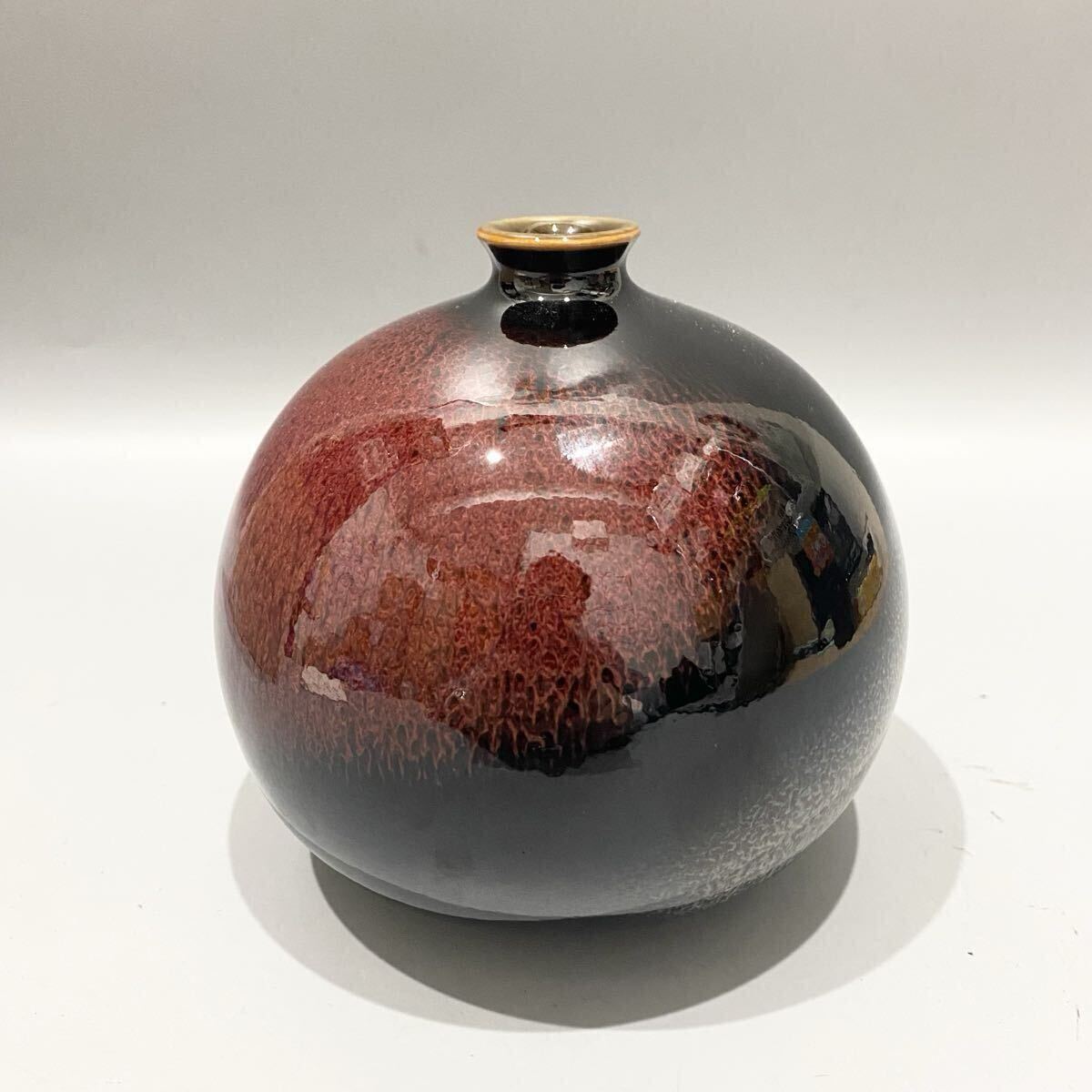 1円 美品 辰砂天目 副島四郎 花瓶 壺 花器 花生 花入 陶器 共箱 略歴書あり