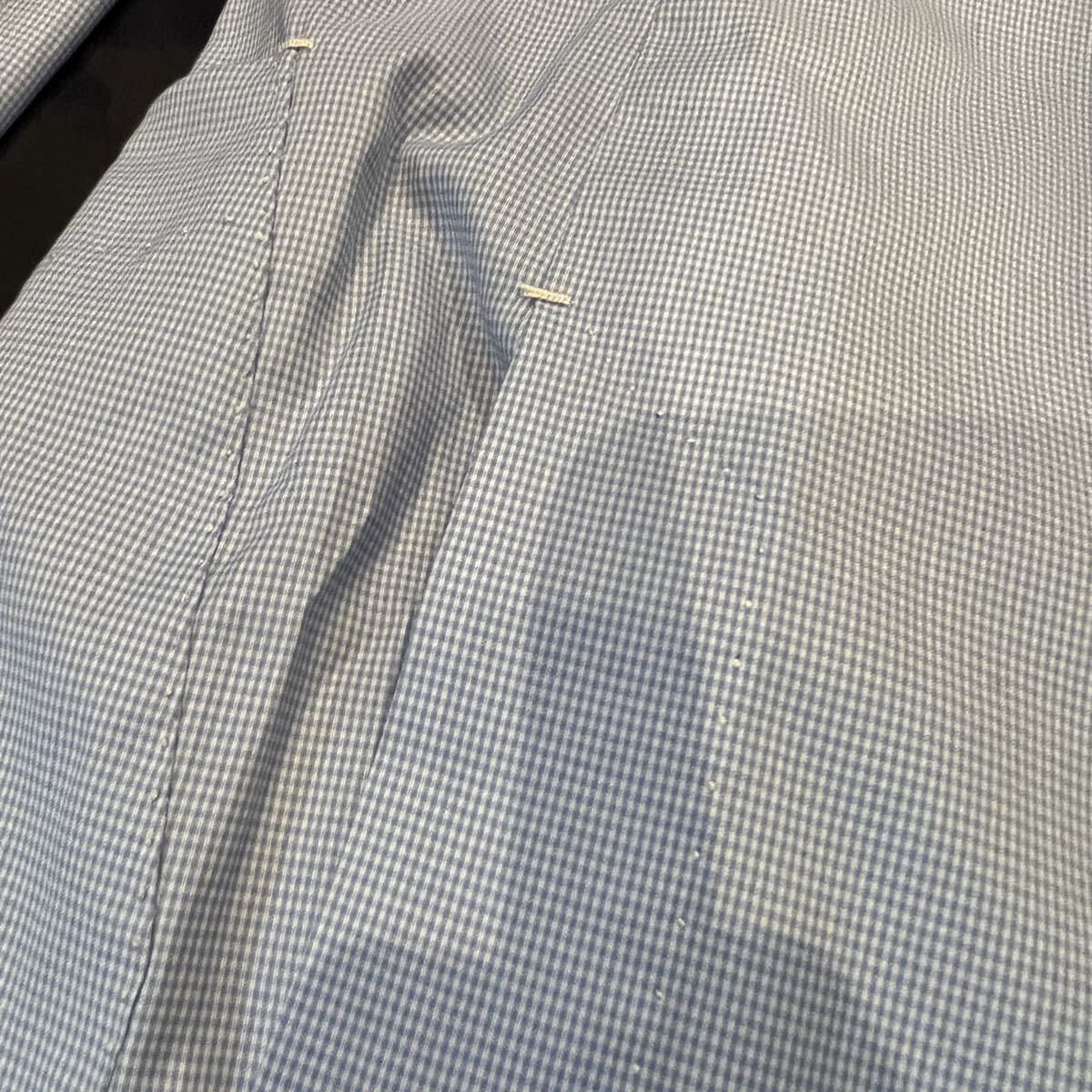 平置きの肩幅は46.5cm、身幅50cm、袖丈66cm、着丈74cmくらいです。多少の誤差はご了承ください。だいたい46相当のサイズ感な印象。