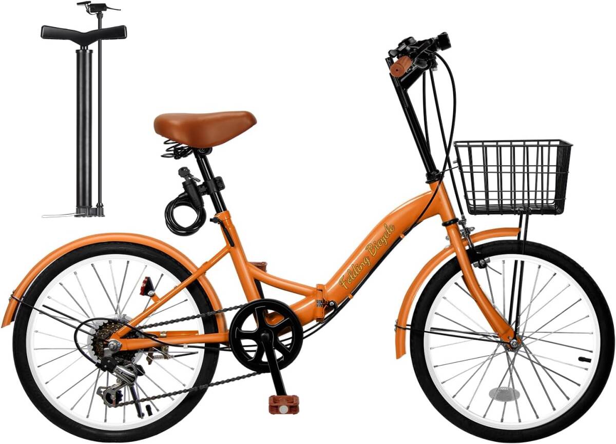オレンジ色 専用空気入れ付き Mixiu 折りたたみ自転車 20インチ 軽量 素早く折畳可能 P-O8 シマノ6段変速 高炭素鋼フレーム