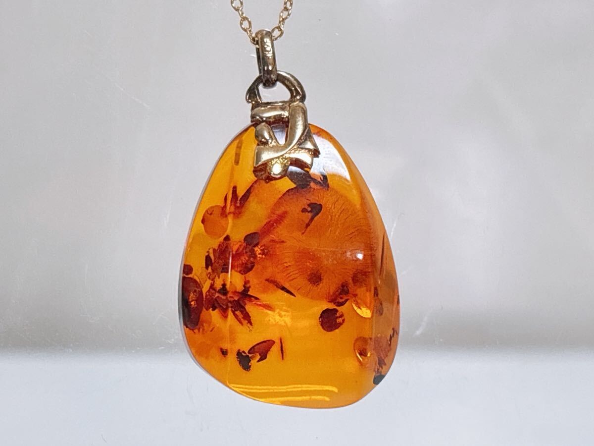 温かみのあるオレンジブラウンの天然琥珀(アンバー)ペンダントトップです。