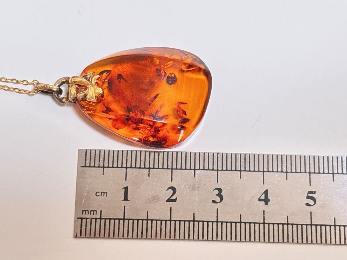 3 琥珀 コハク アンバー ネックレス 天然石 アクセサリー ペンダント 宝石 一点物 ギフト 新品ゴールドチェーン付き 46cm