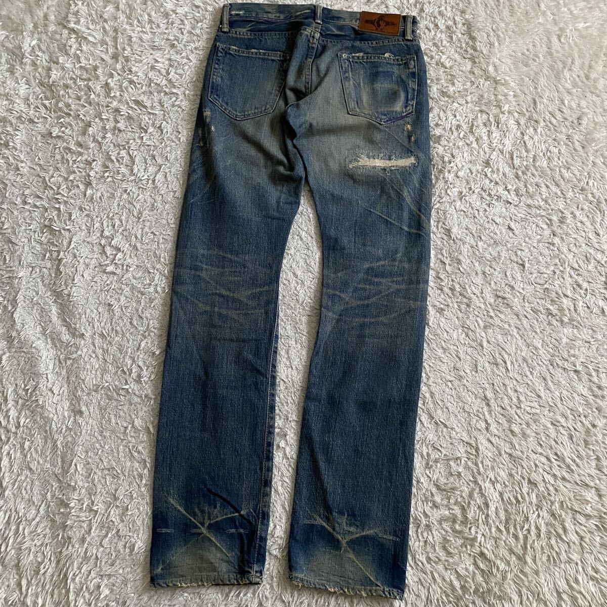 亀梨着用 スタッズ ダメージ&リペア加工 USED加工 セルビッジ セルビッチ ユーズド ヴィンテージ加工 ビンテージ デニム ジーンズ Gパン ジーンズ ボトムス パンツ アメカジ 鬼ヒゲ 縦落ち ハチノス 4AP-2121