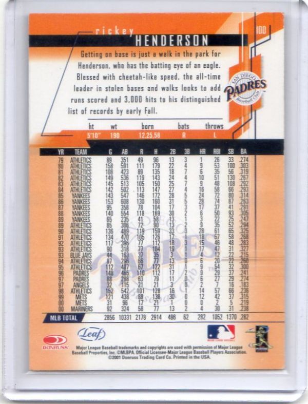 | ★☆リッキー・ヘンダーソン カード Vol.48 2001LEAF ROOKIES & STARS #100☆★ | |