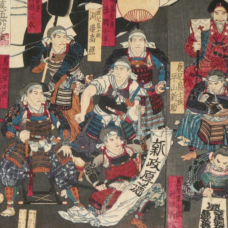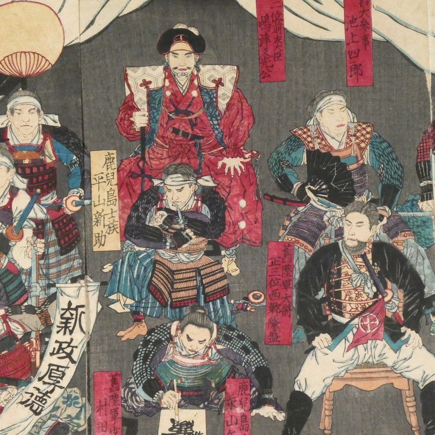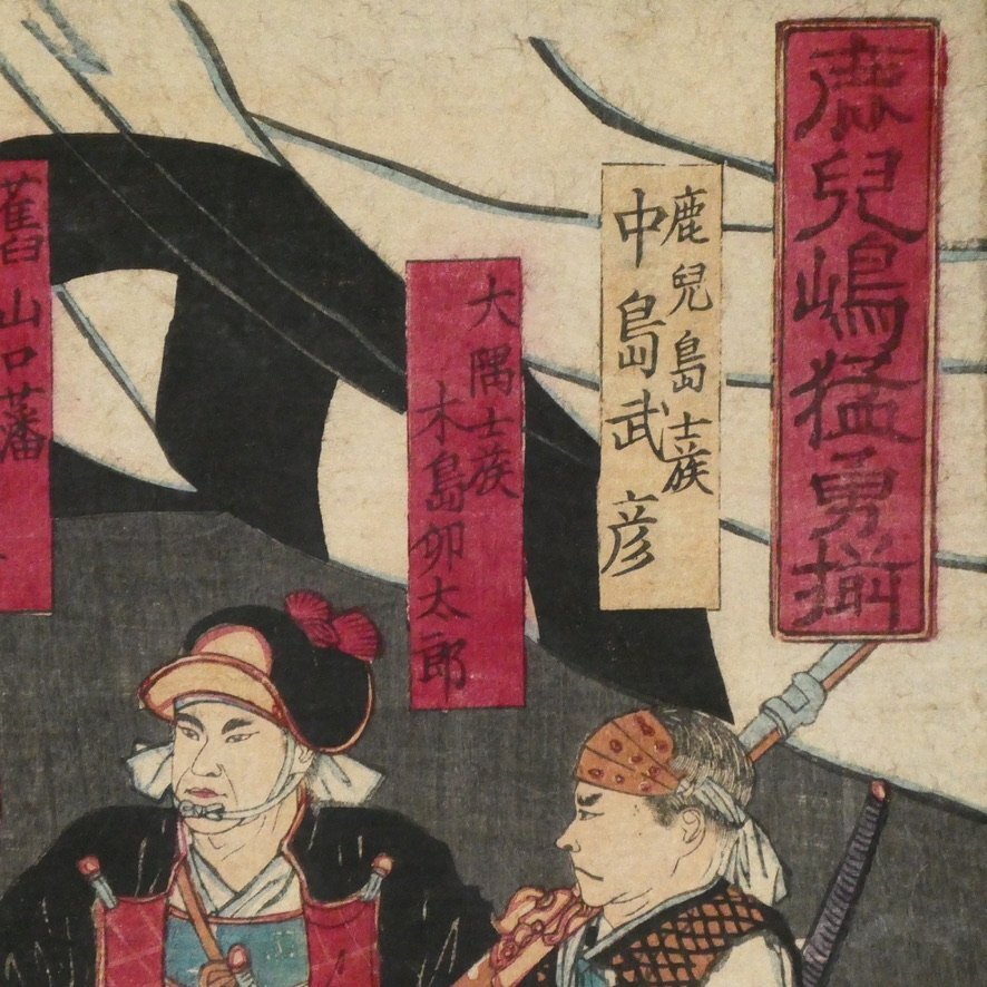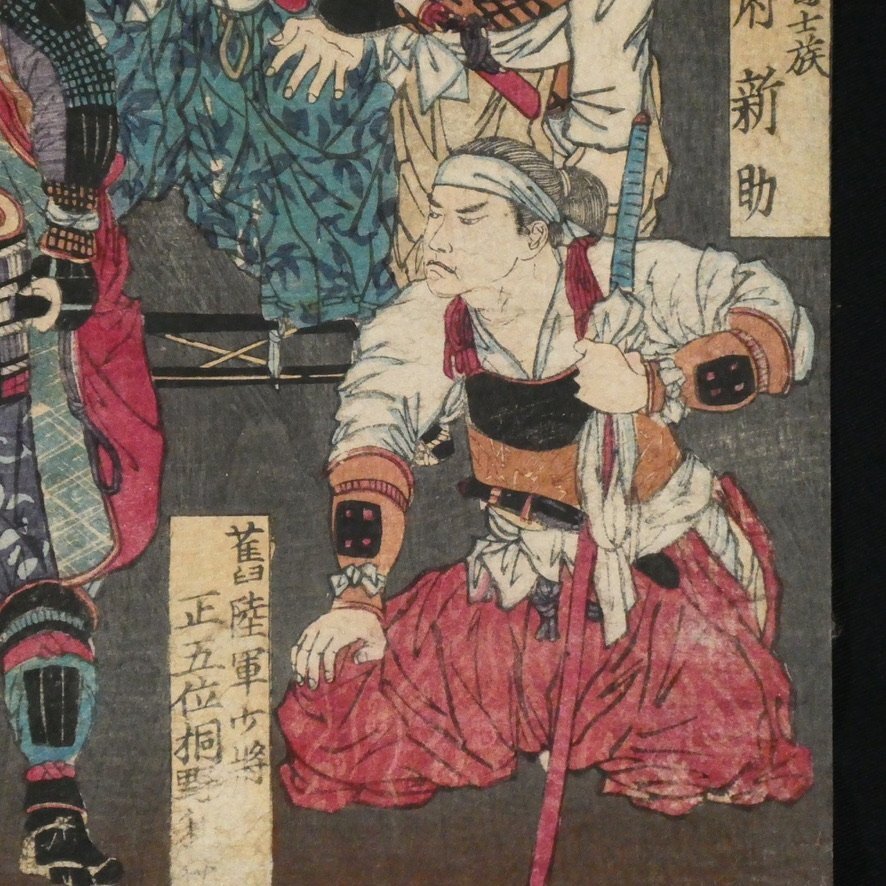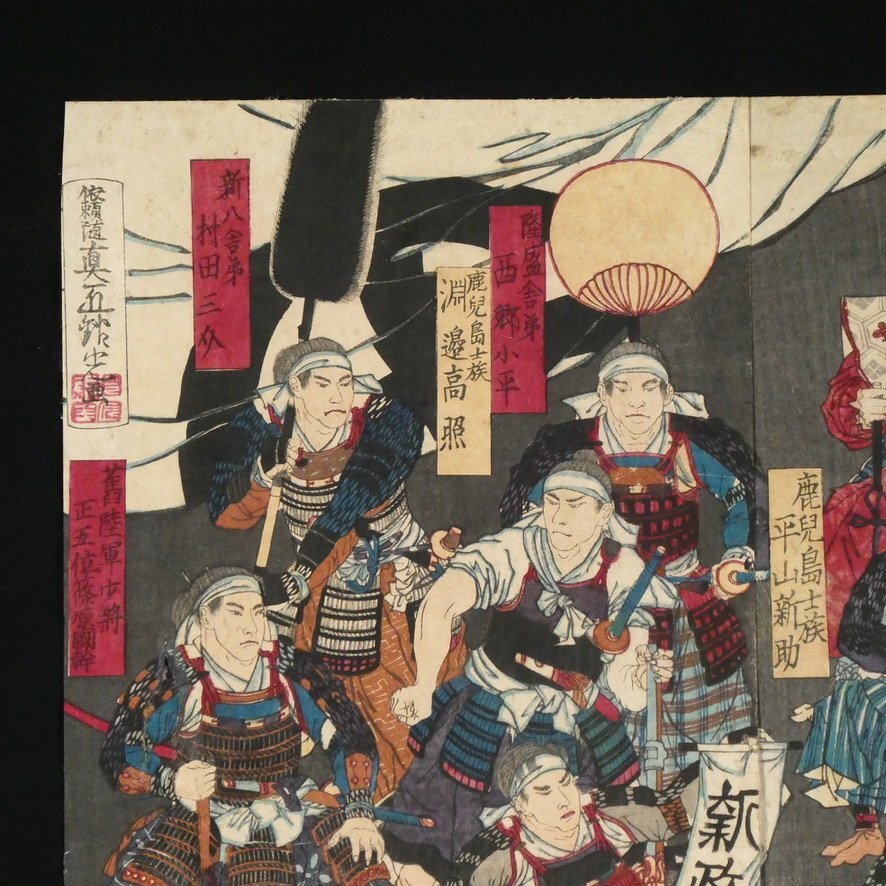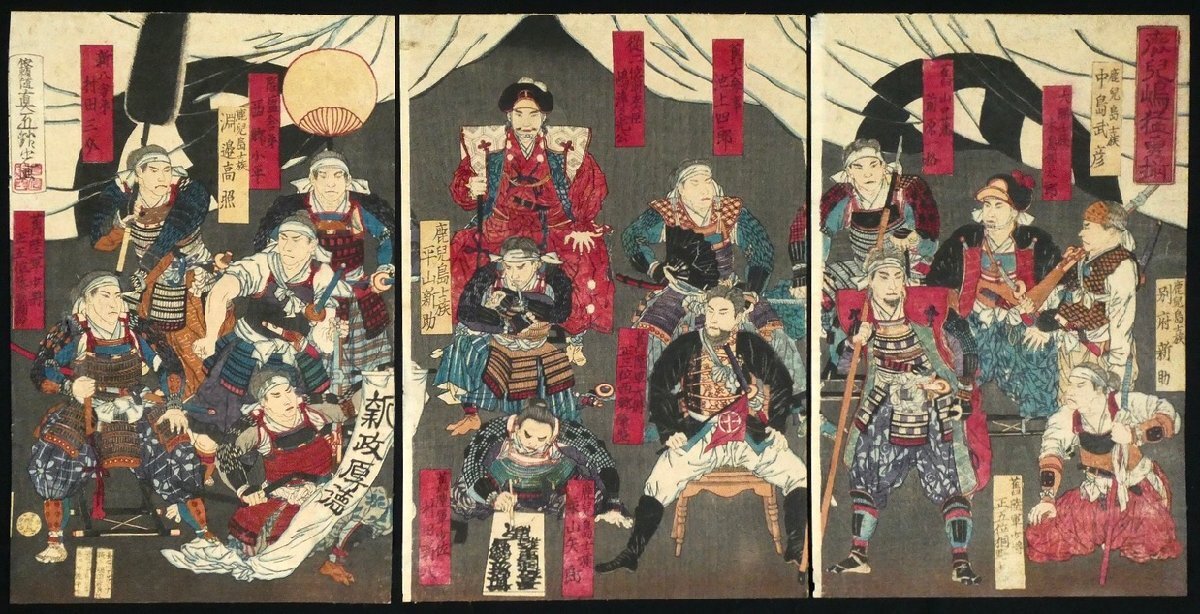 309 安達吟光 鹿兒嶋猛勇揃 三枚続◆西郷隆盛◆池上四郎◆別府新助◆鹿児島◆武者絵◆版画◆浮世絵◆真作