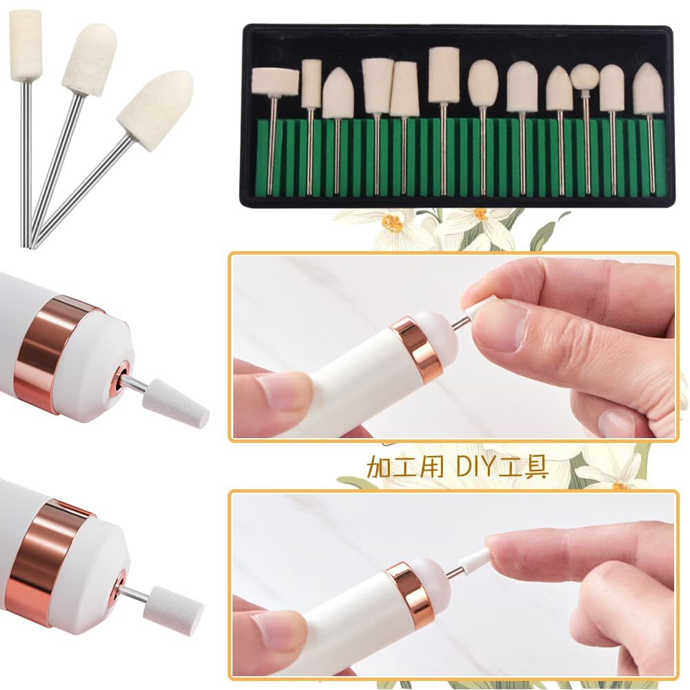 電気ドリルなどの先端に取り付ける。金型、ガラス、シリンダー、金属、宝石、スチール、非金属の研磨、グレージング、最終仕上げに。
