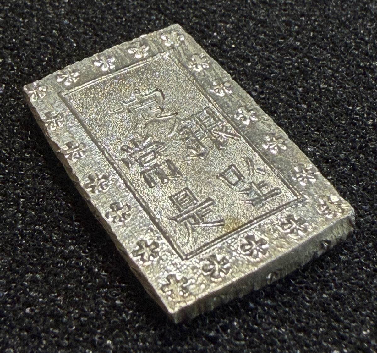| 商品説明 | 【商品内容】 希少 【本座 安政一分銀 Fe 包み出し 未使用品 】 製造時の”雨降り”は少なく、写真では伝わりにくいですが 文字の切立ちも良く 未使用特有の”ラスターの光沢”がとてもキレイです。 ご存じの事とは思いますが、明治、安政一分銀は財政難の為か、 天保一分銀より、粗い仕上げが大変多く、文字切りも浅いものがほとんどの中、 本品ぐらい、キレイな状態の品は、あまり出会えません。 和紙の包の中に、さらに和紙で2重に厳重に包まれており 保存状態が非常に良い一分銀です。(写真に掲載) 個人的な感覚にはなりますが、 鑑定に出したら、ほぼ間違いなくMS鑑定つくと思います。 【品位】 銀93.24% OLYMPUS VANTA 蛍光X線分析計機 (約400万円)で測定。 鑑定結果は写真に掲載しています。 【量目】:8.74g 【状態】: 銀座オークションにて落札した一分銀、包出しです。 一分銀の包を開封した中の品物です。 画像にある包の中から出しました。 包は落札商品に含みません! 【本座 安政一分銀 Fe 包み出し 未使用 】となります。 コンディションは写真でご判断ください。 現状で気に入っていただける方のみお願い致します。 計量器は安価な物ですので多少の誤差はあると思います。 発送は【おてがる配送ゆうパケットポスト】を選んでいただき コインホルダーに入れ、プチプチに包み さらにプチプチ付き封筒に入れて発送いたします。 ◆あくまで個人保管品です。 画像にてご判断いただき、ご納得いただける方のみご入札をお願い致します。 また画像には限りがございますので、色味が異なる場合などあるかもしれません。 詳細部分にこだわる方、完璧をお求めになる方、状態に神経質な方もご遠慮願います。 商品状態に関しては個人差がございます。 落札後の商品状態による返品や故障時の補償は一切お断りいたします。 (すり替え防止の為) ◆不要なトラブルを避けるため、3日以内のご決済、 速やかな受け取り連絡をお守り頂ける方のみとしております。 あらかじめご了承ください。 お守り頂けなかった場合、落札者都合キャンセルとさせていただきます。 以上、全てをご了解いただける方のみご入札をお願い致します。 ■新規の方及び、評価が低い方の入札は取り消させていただく場合がございます。 ■領収証の発行は対応しておりません。 |