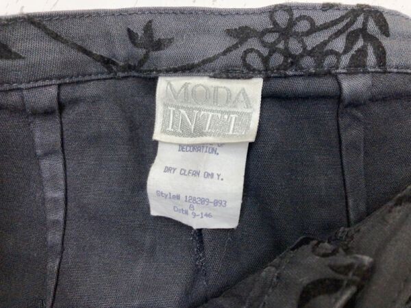 MODA INTL USA製 花柄 総柄 フロッキープリント オールド レトロ 90s 古着 紙タグ パンツ ボトムス レディース 8 黒 です。