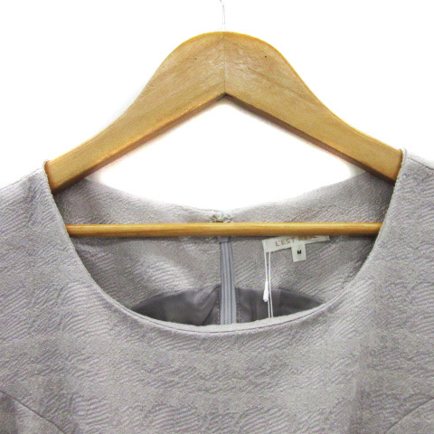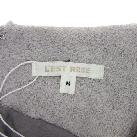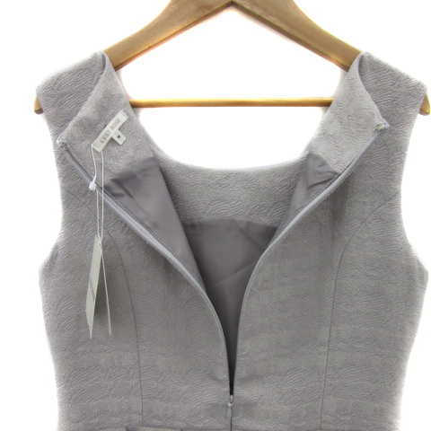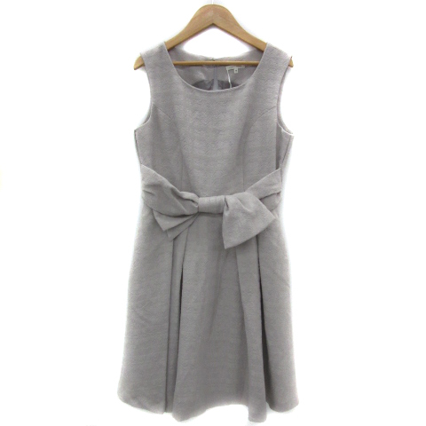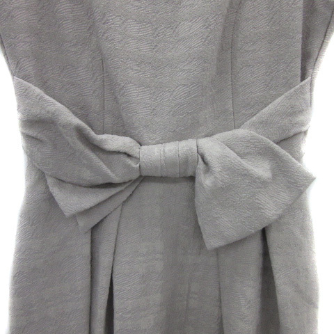 未使用品 レストローズ L'EST ROSE ワンピース ひざ丈 ノースリーブ ラウンドネック リボン M ライトグレー /YS23 レディース