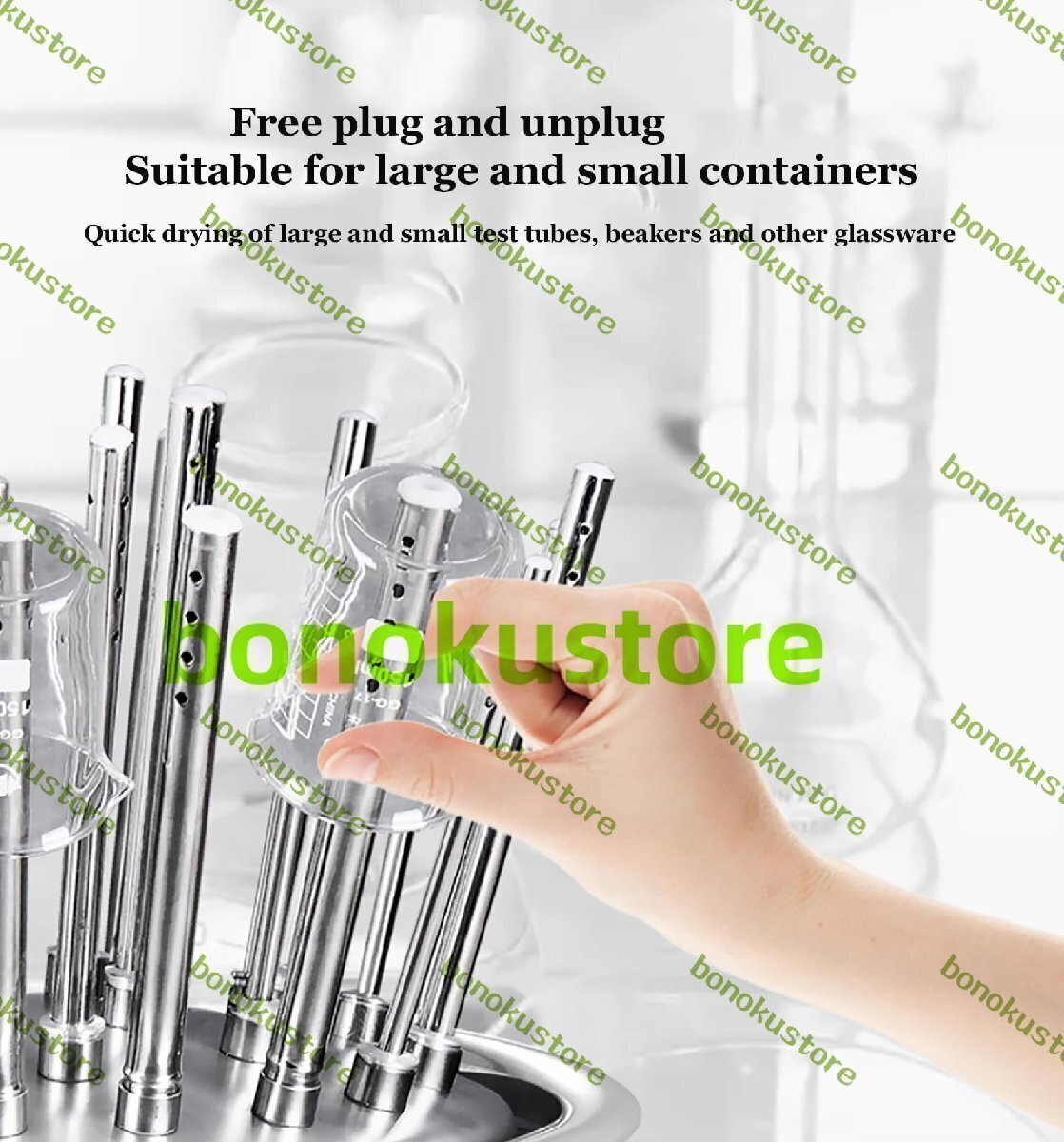 実験器具乾燥ラック、実験室用ガラス器具乾燥機、40~120℃温度調整、乾燥時間8~10分、ガラス試験管およびビーカー用、ステンレススチール乾燥機洗浄装置