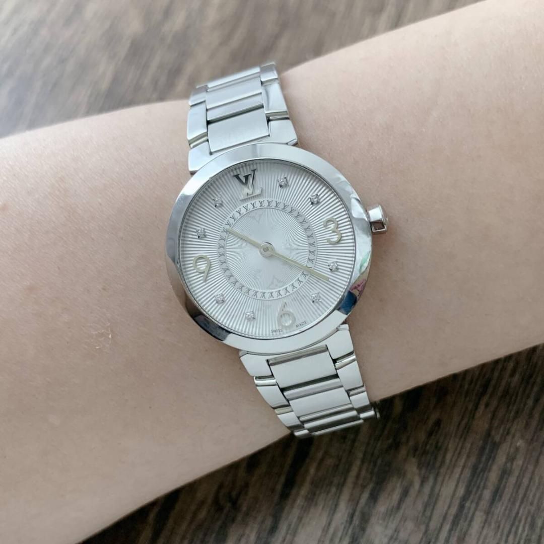 ホワイトとシルバーの世界観、インデックスに大粒ダイヤが8個配置され、豪華で華やかなルイヴィトンの世界観が散りばめられた1品です。