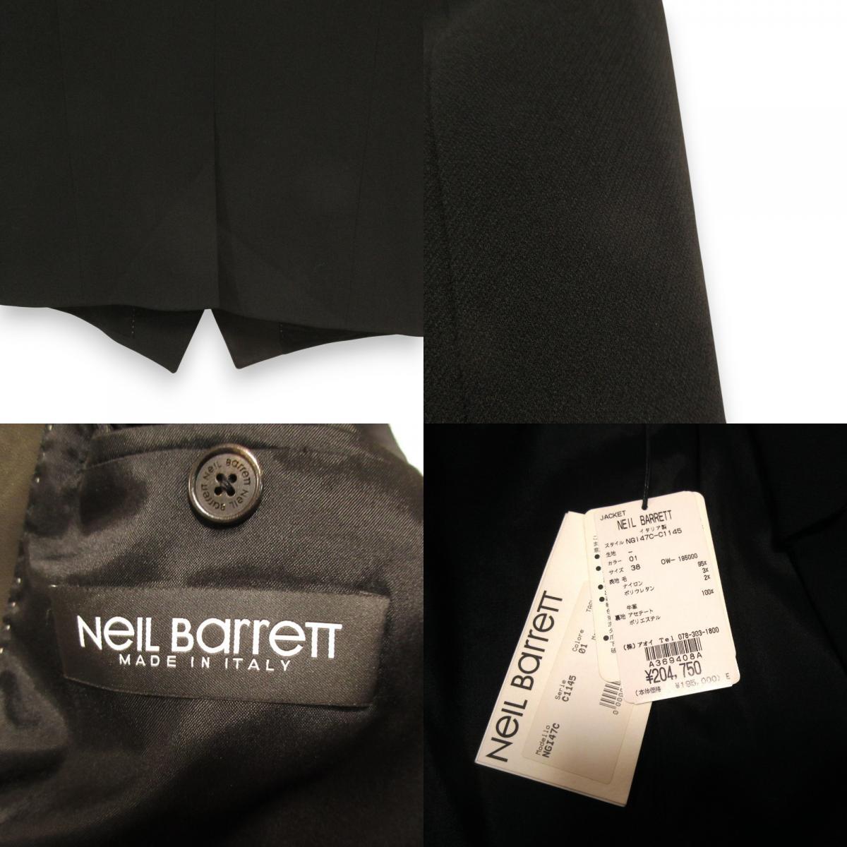 未使用 NEIL BARRETT ニールバレット アシンメトリー テーラードジャケット サイズ38 ブラック