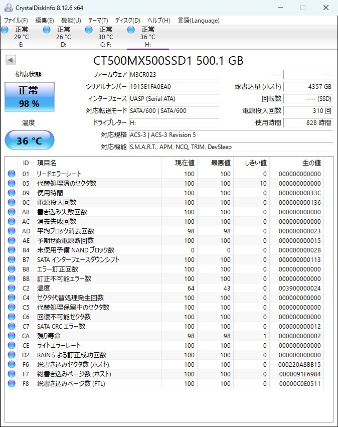 CT500MX500SSD1/JP [Crucial MX500 2.5インチ 7mm SATA 500GB]