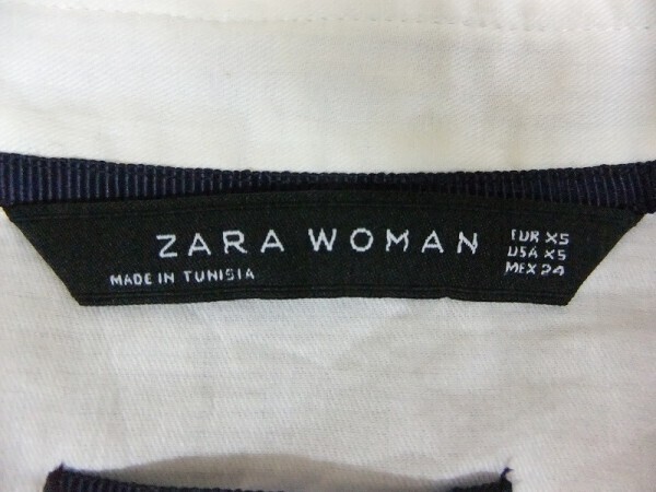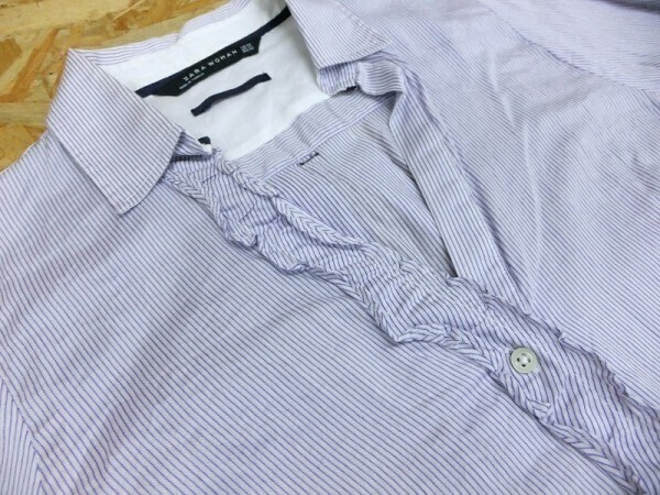 ZARA WOMAN ザラウーマン レディース 綿100% ヘアラインストライプ柄 前立フリル Vネック 長袖シャツ 小さいサイズ XS 紫 です。