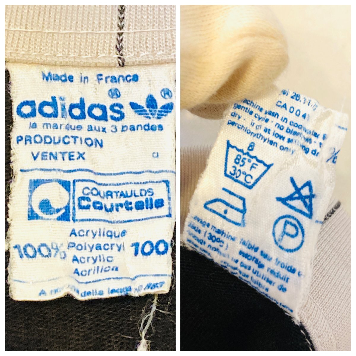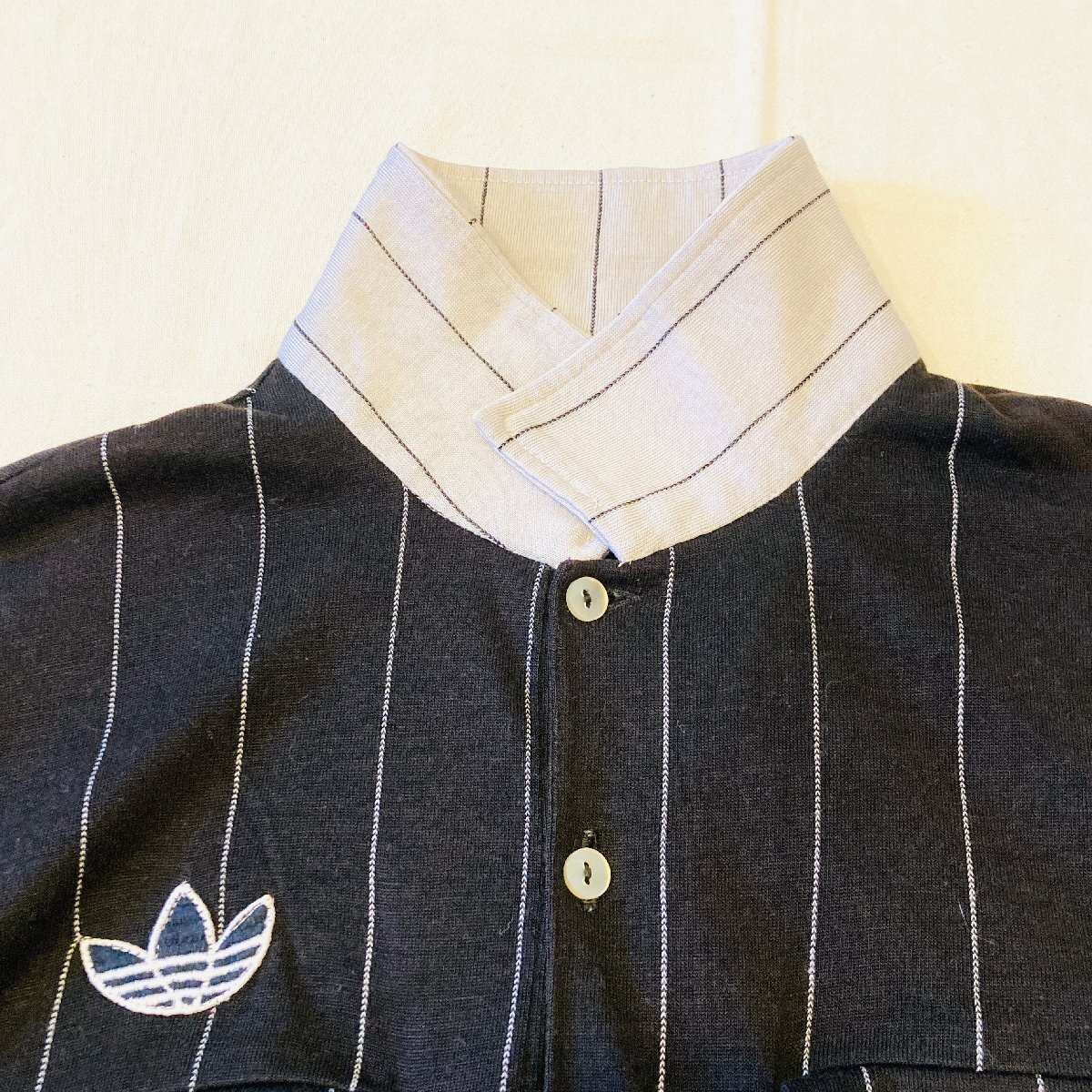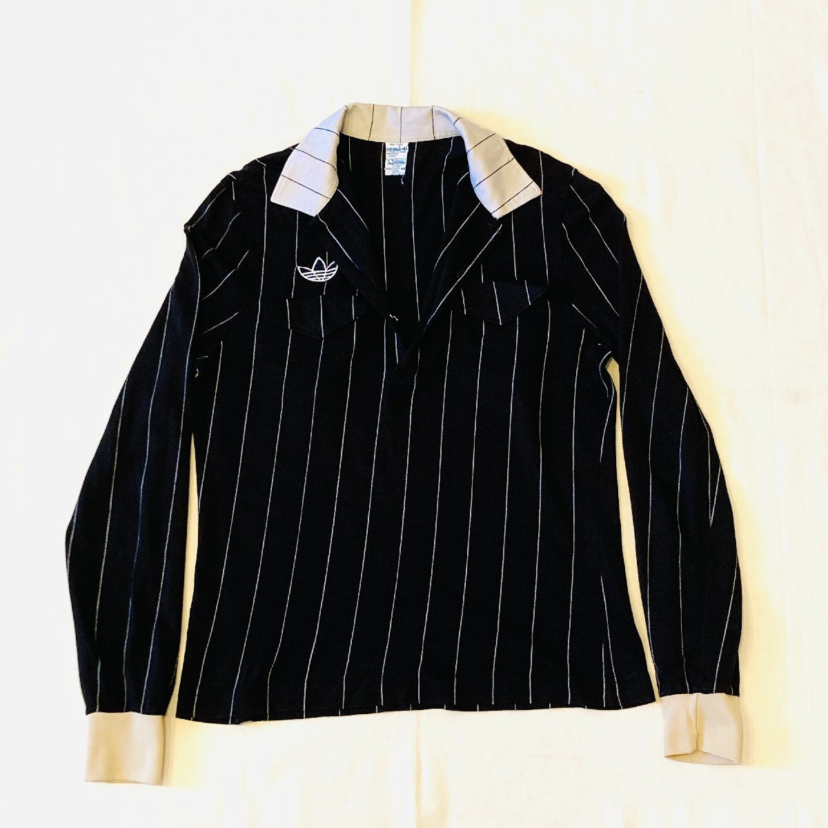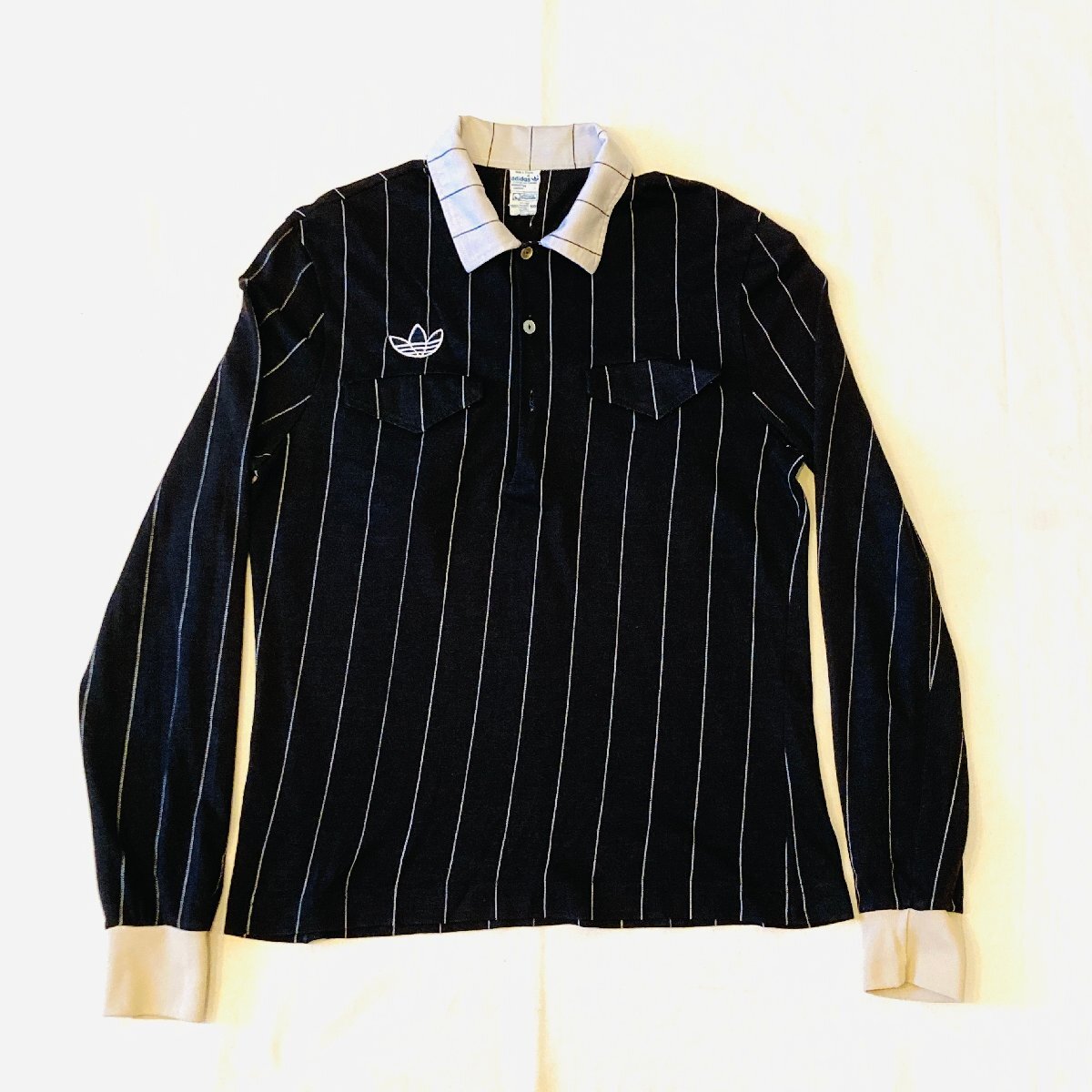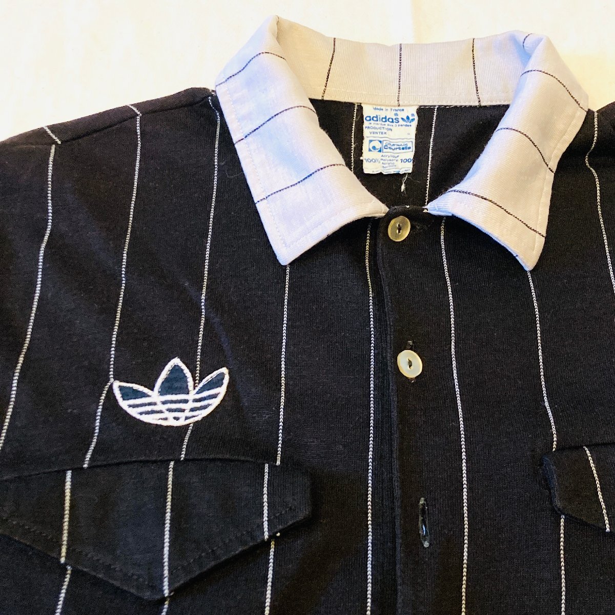 希少 70s adidas アディダス VENTEX フランス製 ヴィンテージ トレフォイル ロゴ 刺繍 ロングスリーブ ポロシャツ ブラック系