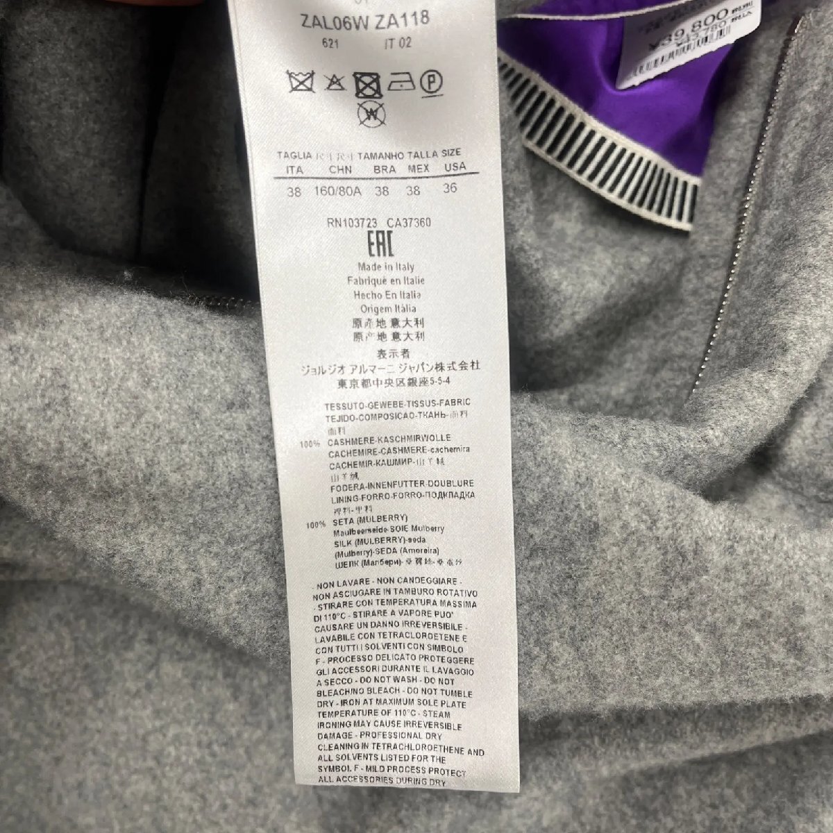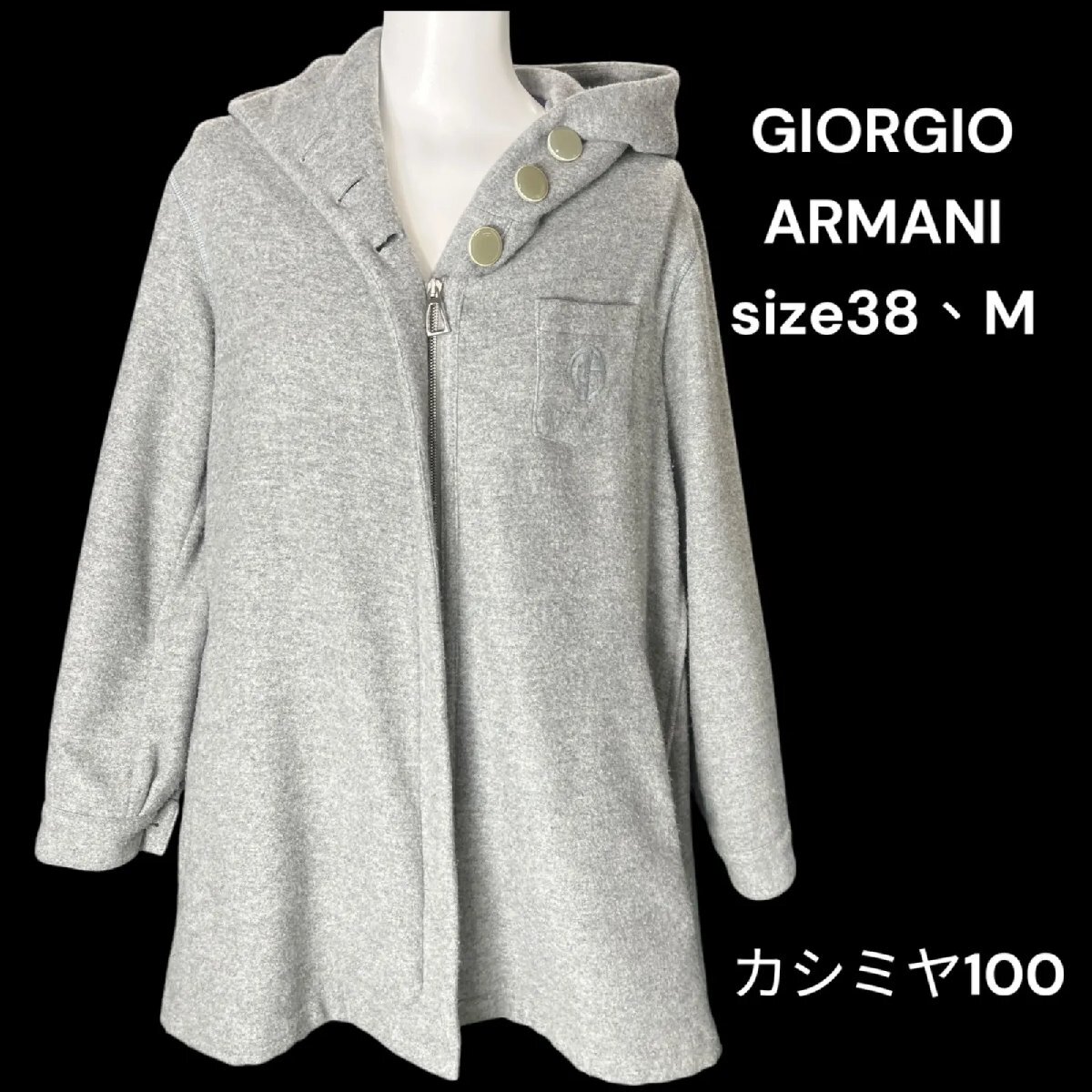 ジョルジオアルマーニ GIORGIO ARMANI コート カシミヤ100 フーディー グレー フード 38、M、9号 レディース 中古 S5N402
