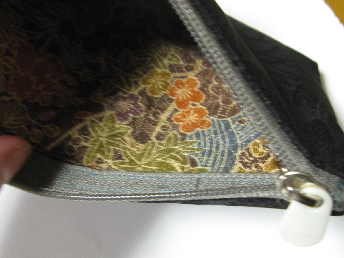 内側は、古布 (花・模様)  ◎ファスナーは、グレー系 (つまみ付き)