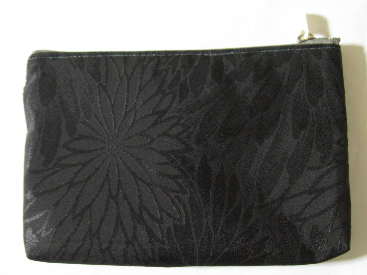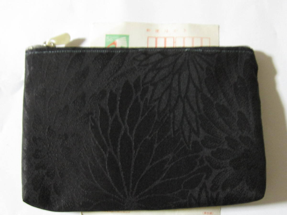 手作り 着物リメイク 大 ポーチ 黒 花 菊 模様 和菊 大柄 レトロ ハンドメイド 冬 喪中 喪服用 法事 手芸 財布 小物 男女 兼用 お洒落 幅広