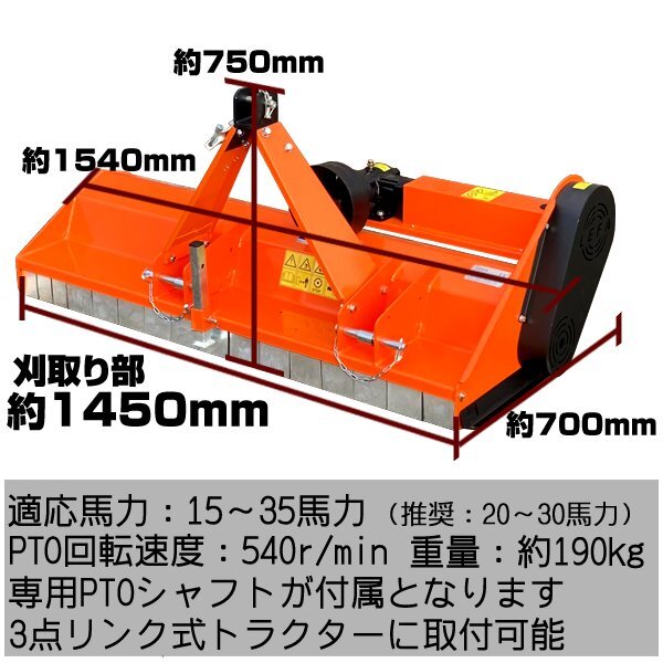 | 刈幅145cm トラクター用 フレールモア 草刈り機 アタッチメント |