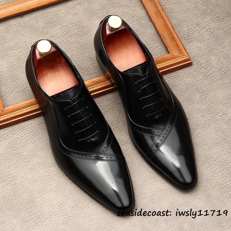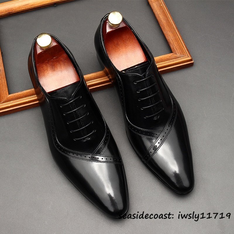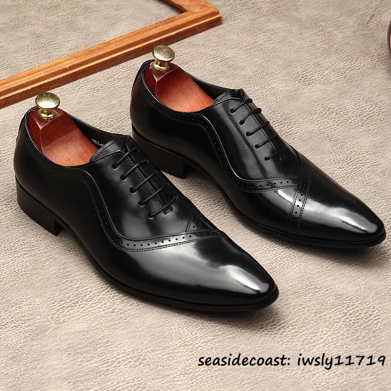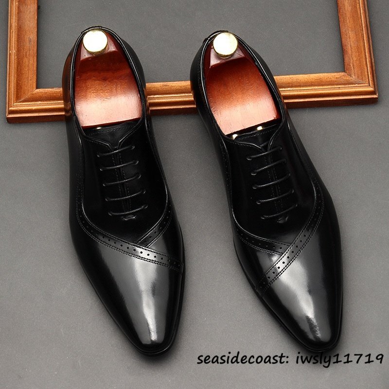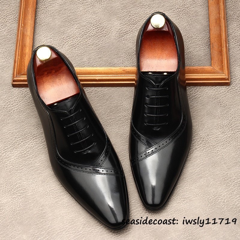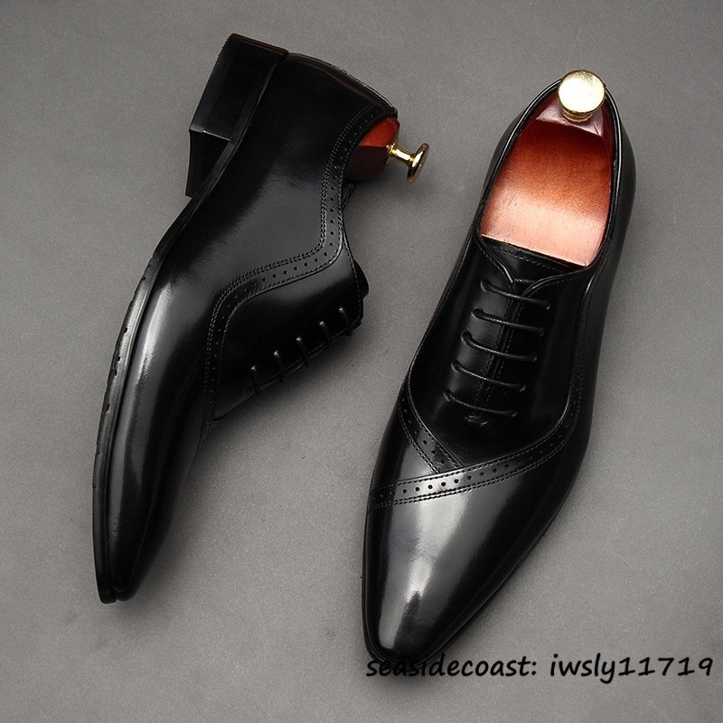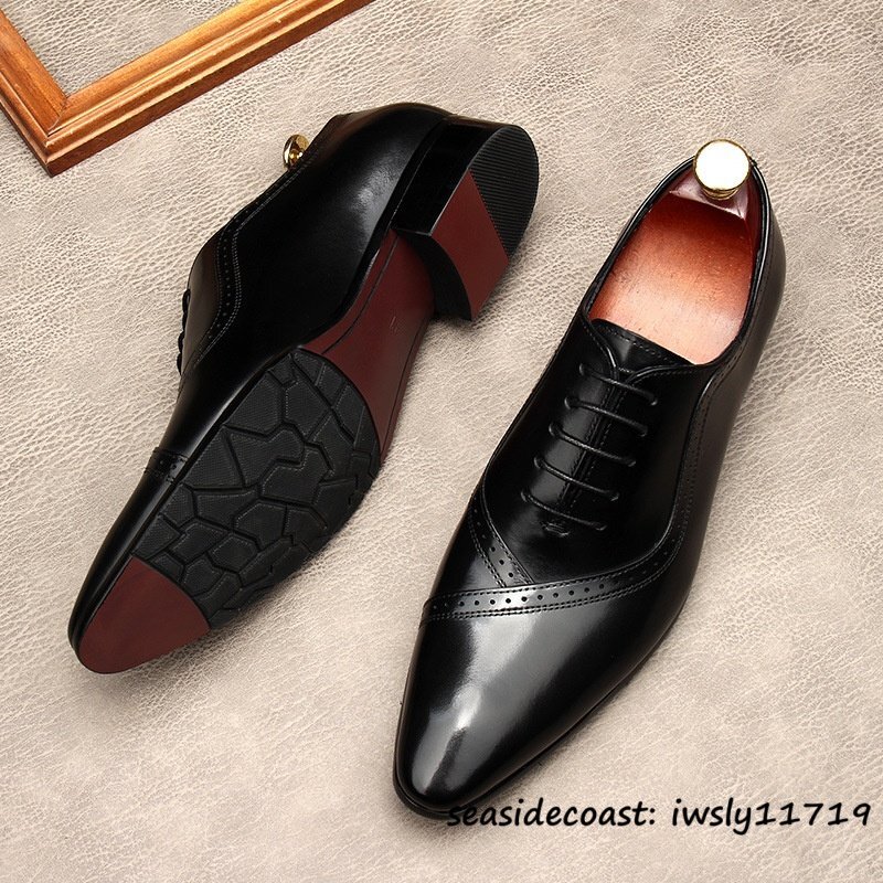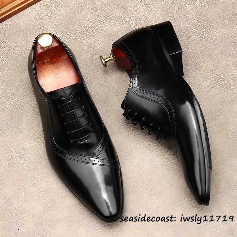 最高級◆定価9万 ビジネスシューズ 本革 レザーシューズ メンズ 超希少 職人手作り 牛革 紳士靴 フォーマル 冠婚葬祭 革靴 ブラック 26.5cm