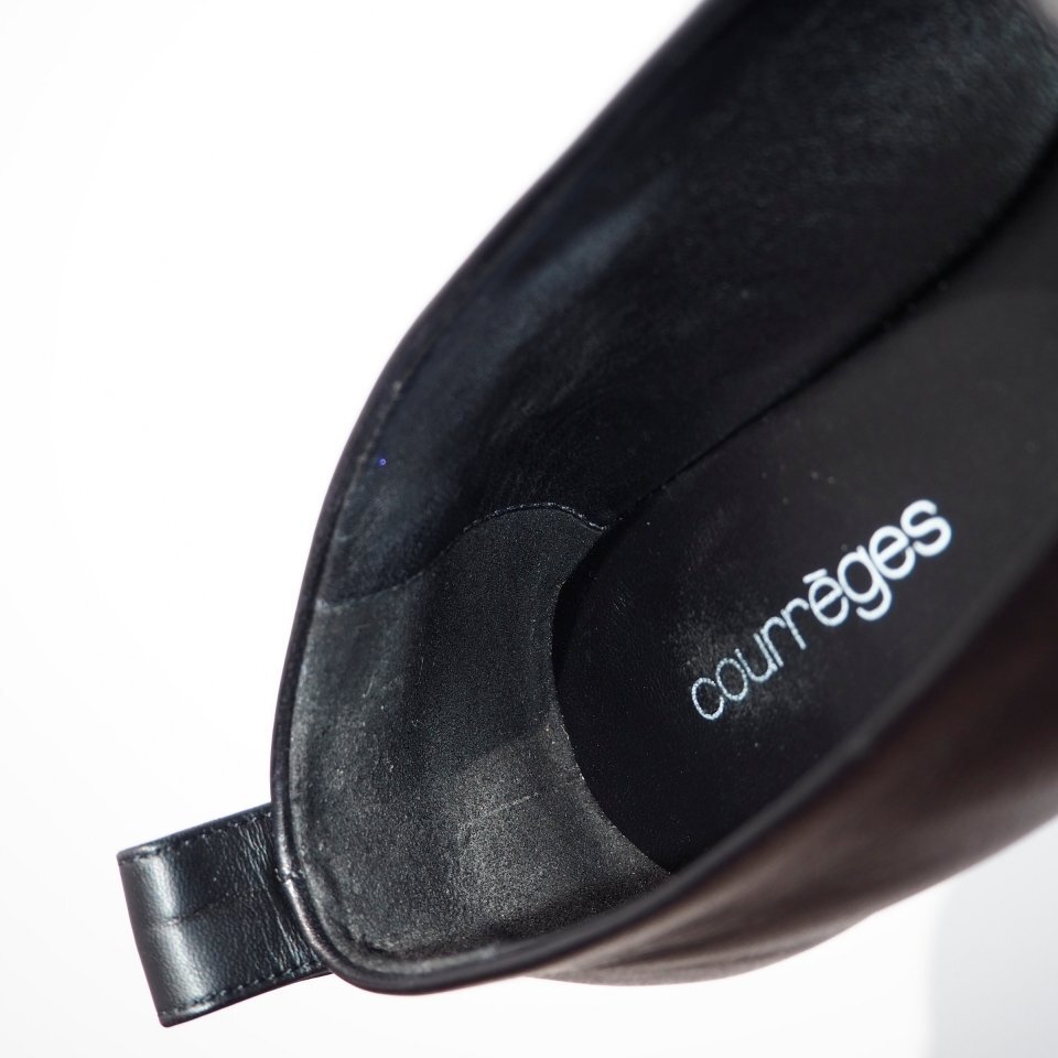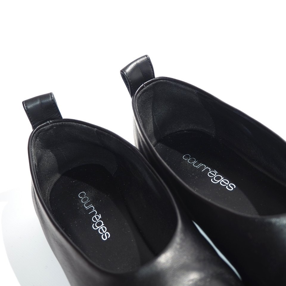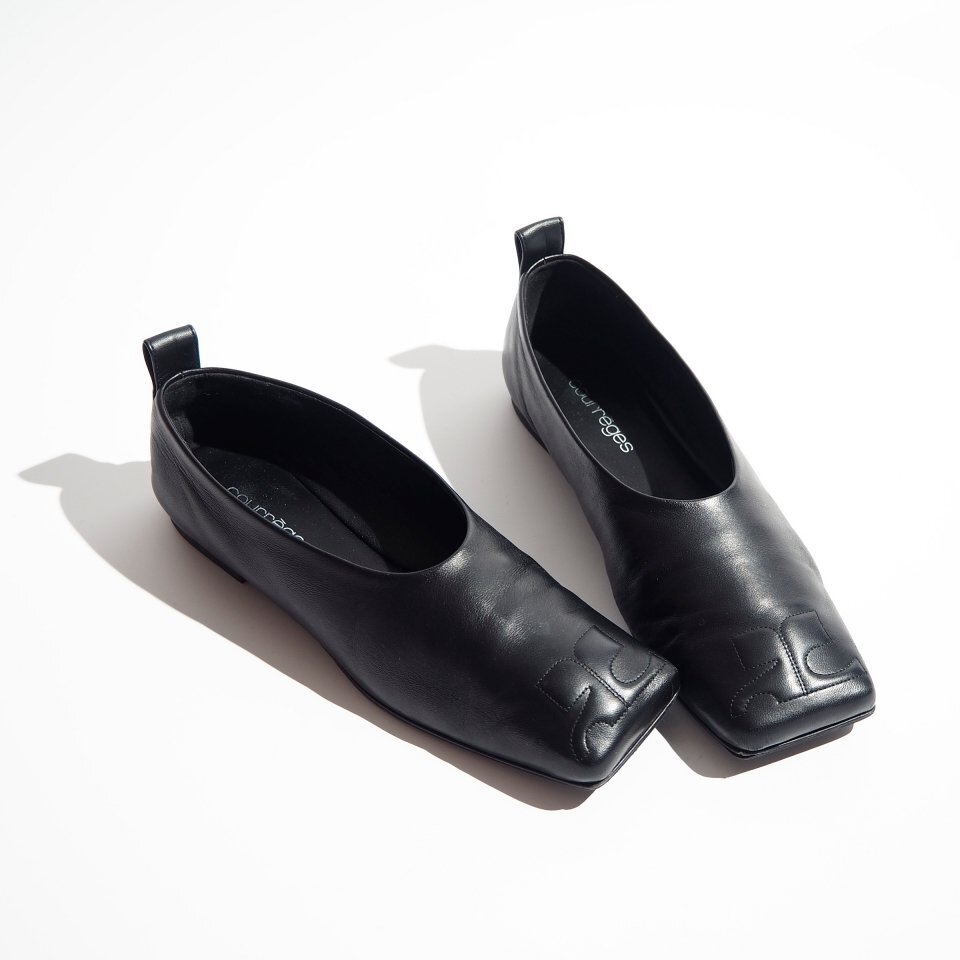 R4011P ▼courreges クレージュ▼ 24AW ロゴ スクエアトゥ フラット シューズ ブラック 36/23.5cm レザーシューズ パンプス 黒 rb mks