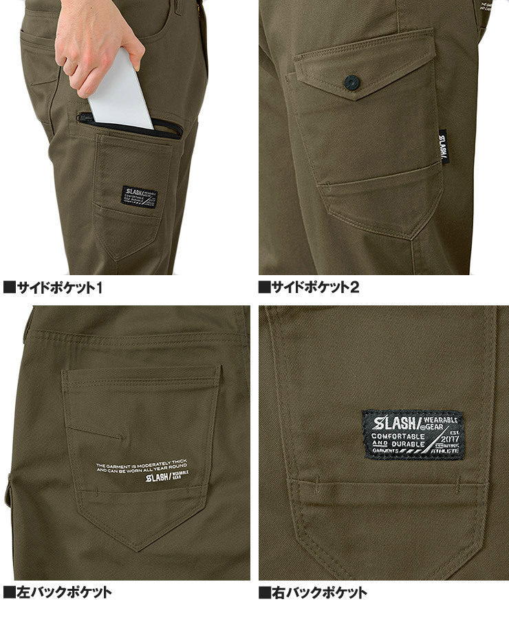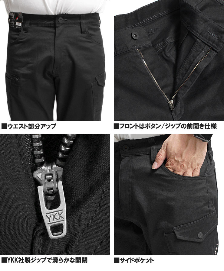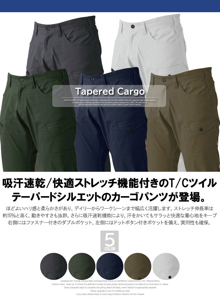 | 商品説明 | 丈夫さと快適さを両立したT/Cツイル素材を使用した、テーパードシルエットのカーゴパンツ。 |