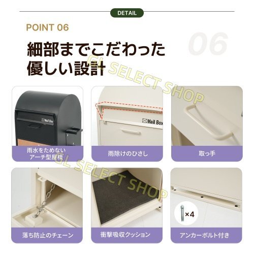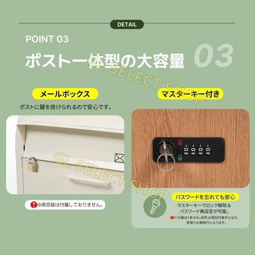 • ◎04【セキュリティに配慮した施錠付き!】メールボックスポストに鍵を掛けられるので安心です。※南京錠は付属しておりません。宅配ボックスお客様が覚えやすい番号に設定変更していただけます。【非常用鍵付き】万一、番号を忘れた場合は非常用の鍵で解錠できます。
