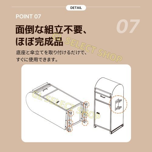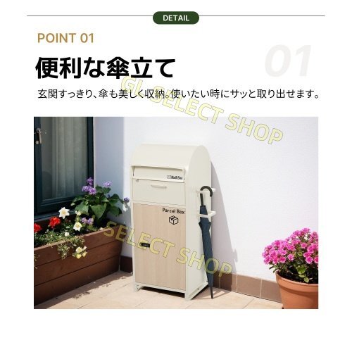 ポスト 置き型 ほぼ完成品 傘立て付き ポスト付き 宅配ボックス付き スタンドポスト 一戸建て用 置き配 シンプル 玄関【ベージュ+木目】