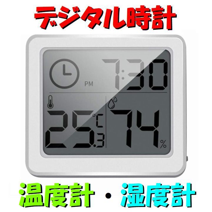 デジタル時計 温湿度計 シンプル見易い 白 温度計 湿度計 屋内 熱中症 赤ちゃん ベビー モニター 小型コンパクト 置き時計 壁面貼り付け