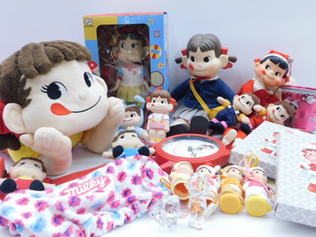 ★小1397 不二家 ペコちゃん グッズ まとめて クリスタルペコちゃん 人形 皿 食器 掛け時計 ティッシュカバー ぬいぐるみ 72510221