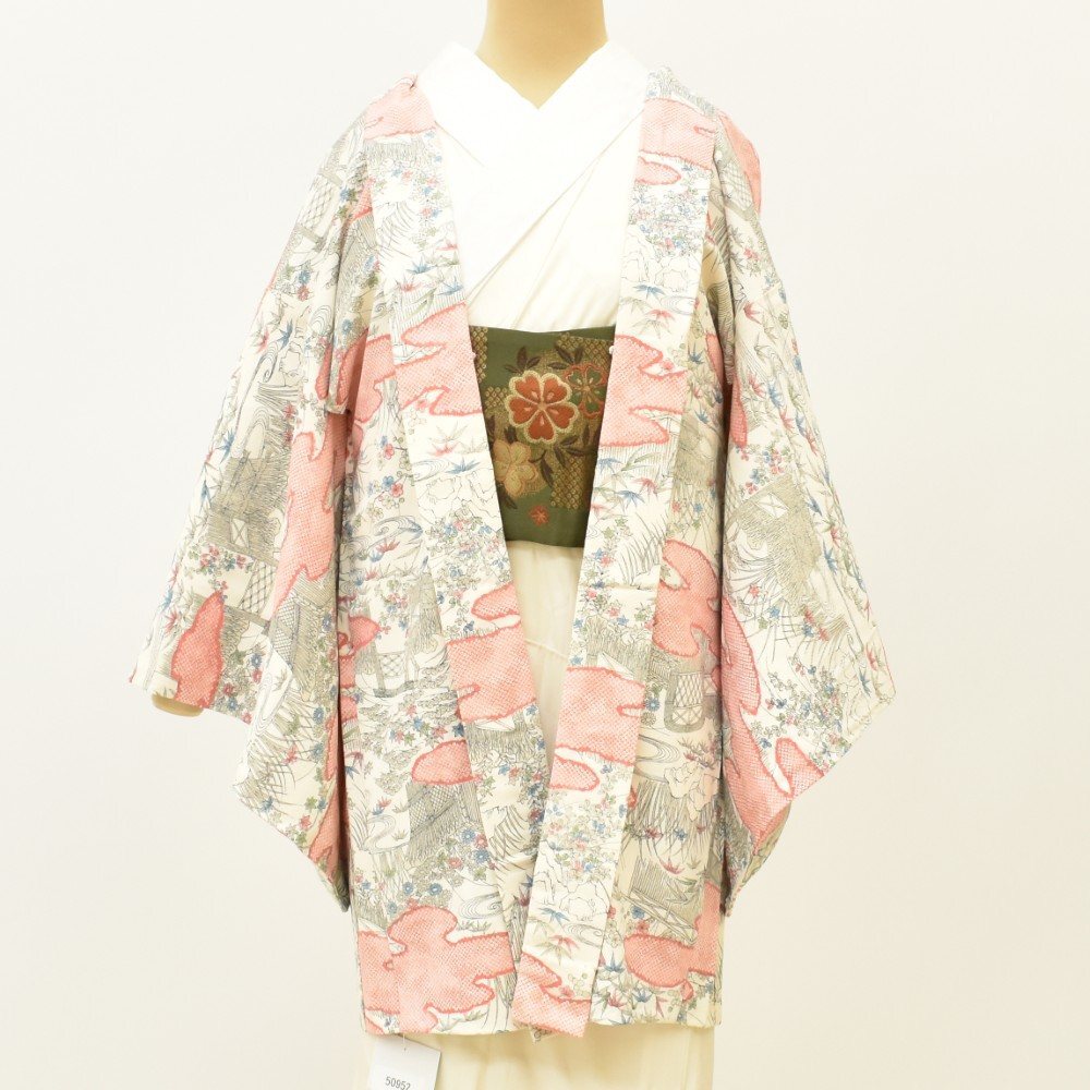 【商品説明】白色にヱ霞や様々な花文様が施されたお洒落な長羽織です。 【シミ汚れ等の状態】 羽裏に多少シミあります 袖に汚れがあります 衿裏に汚れがあります ★サイズについて サイズに関しましては一品ずつ手で測っており、お着物や帯の性質上生地の伸縮性もございますので、 若干の誤差がある場合が多々ございます。 2cm未満の場合は、誤差となりますので大変申し訳ございませんが返品は承っておりません。予め御了承下さい。 |