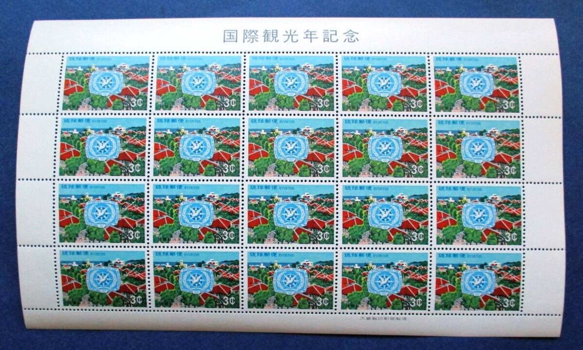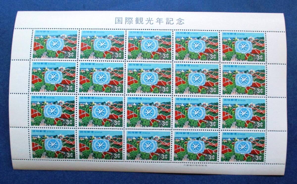 沖縄切手・琉球切手 国際観光年記念 3¢切手 20面シート 165 ほぼ美品です