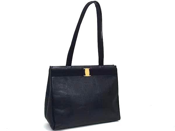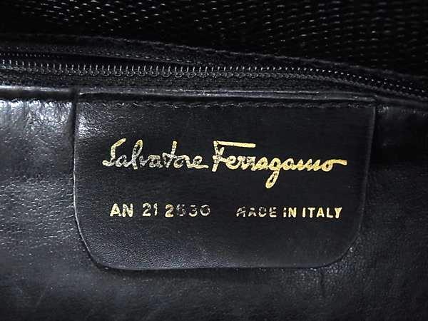 1円 Salvatore Ferragamo フェラガモ リザード型押しレザー ヴァラ トートバッグ ショルダー 肩掛け レディース ブラック系 FR6597