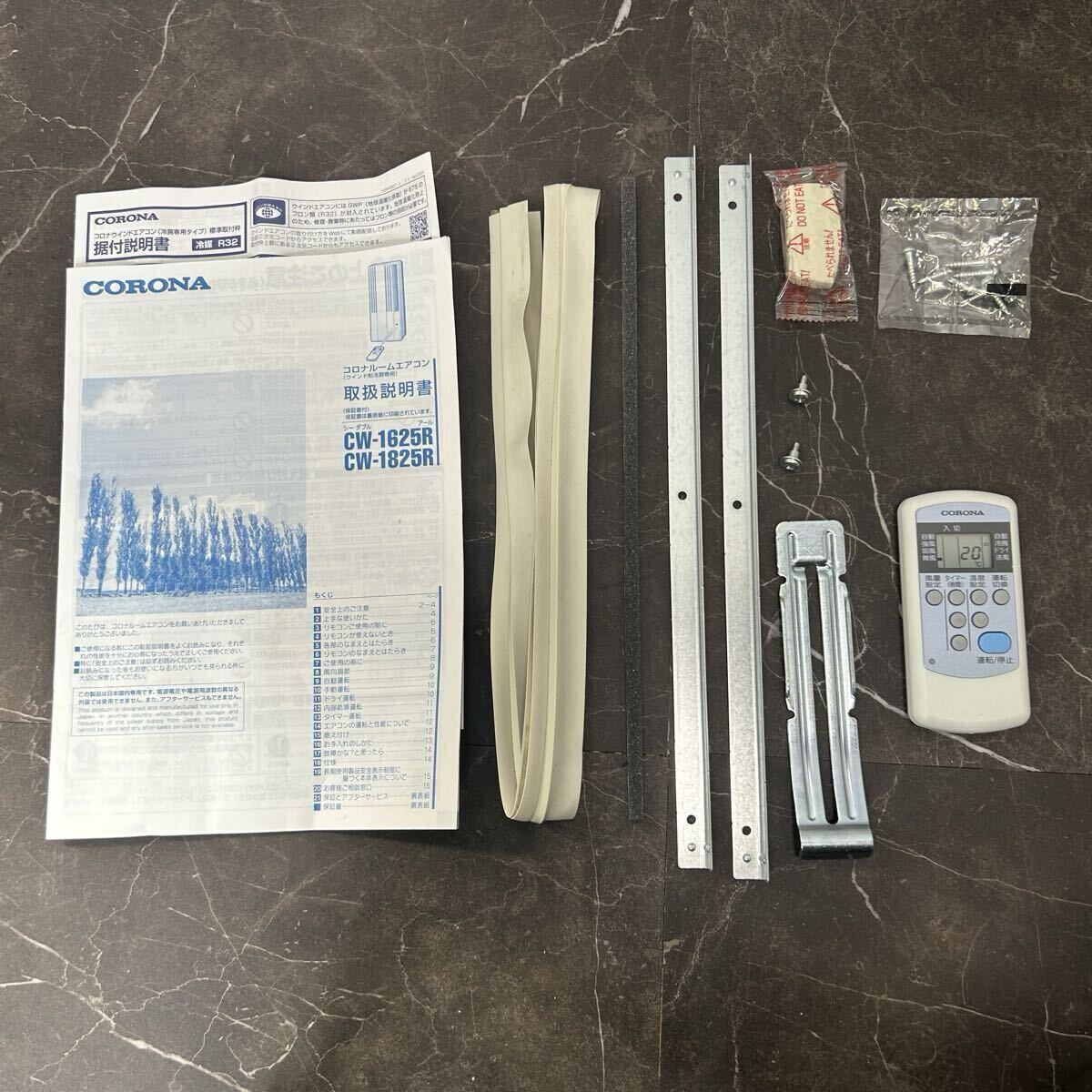 本体、取扱説明書、リモコン、窓取り付けパーツ