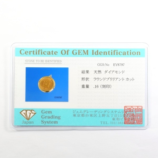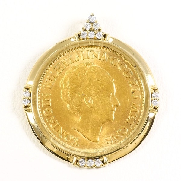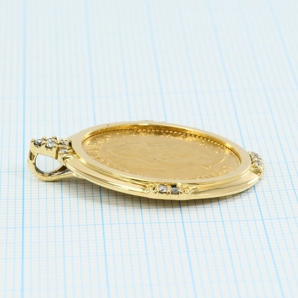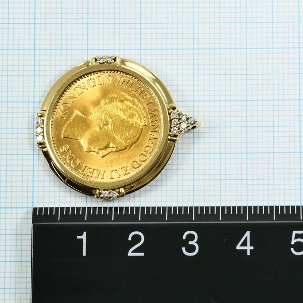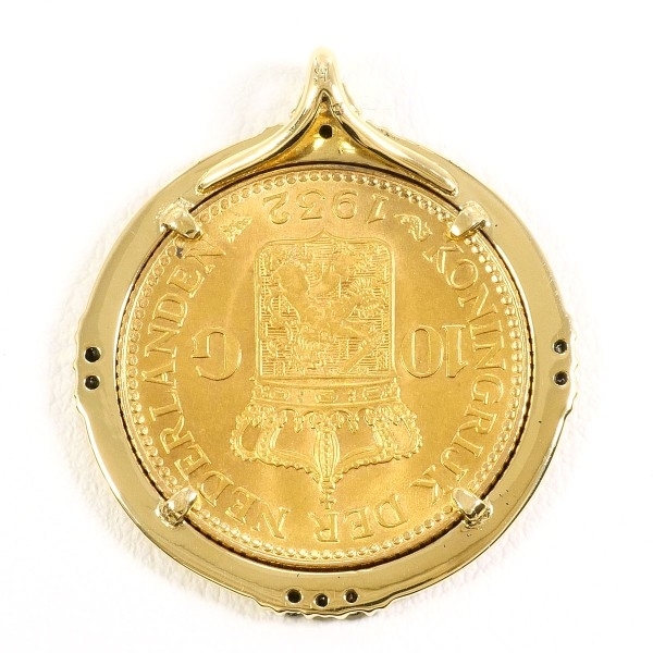 | オランダ ウィルヘルミナ女王 10ギルダー コイン 金貨 K21.6YG K18YG ペンダントトップ ダイヤ 0.16 カード鑑別書 総重量約11.0g | |