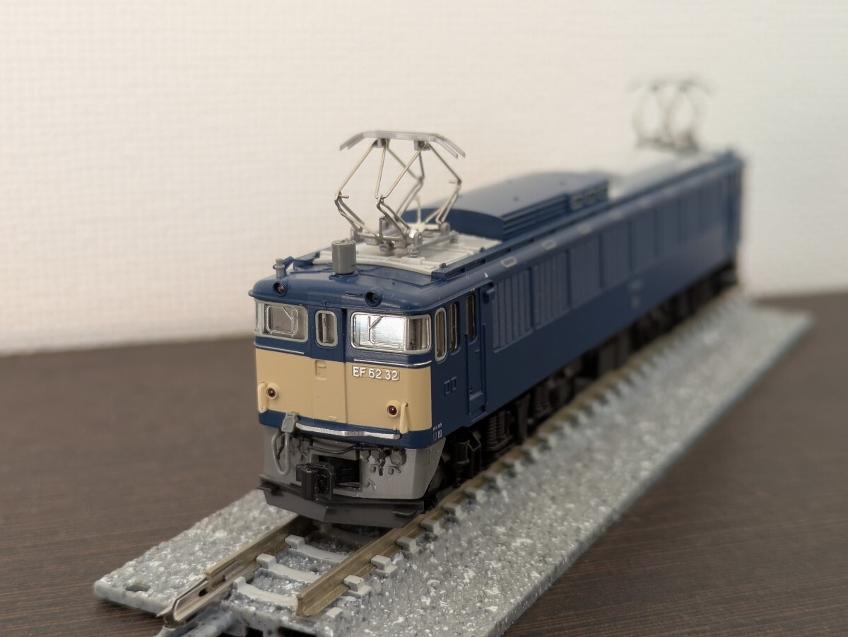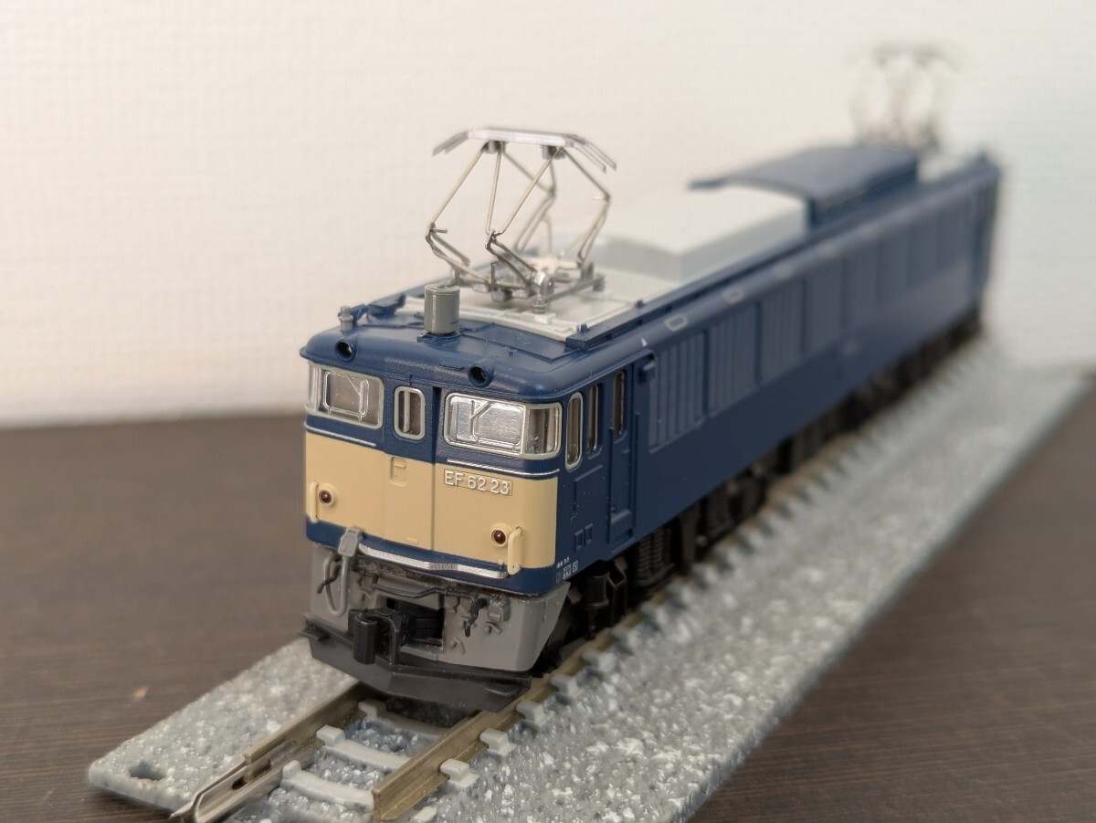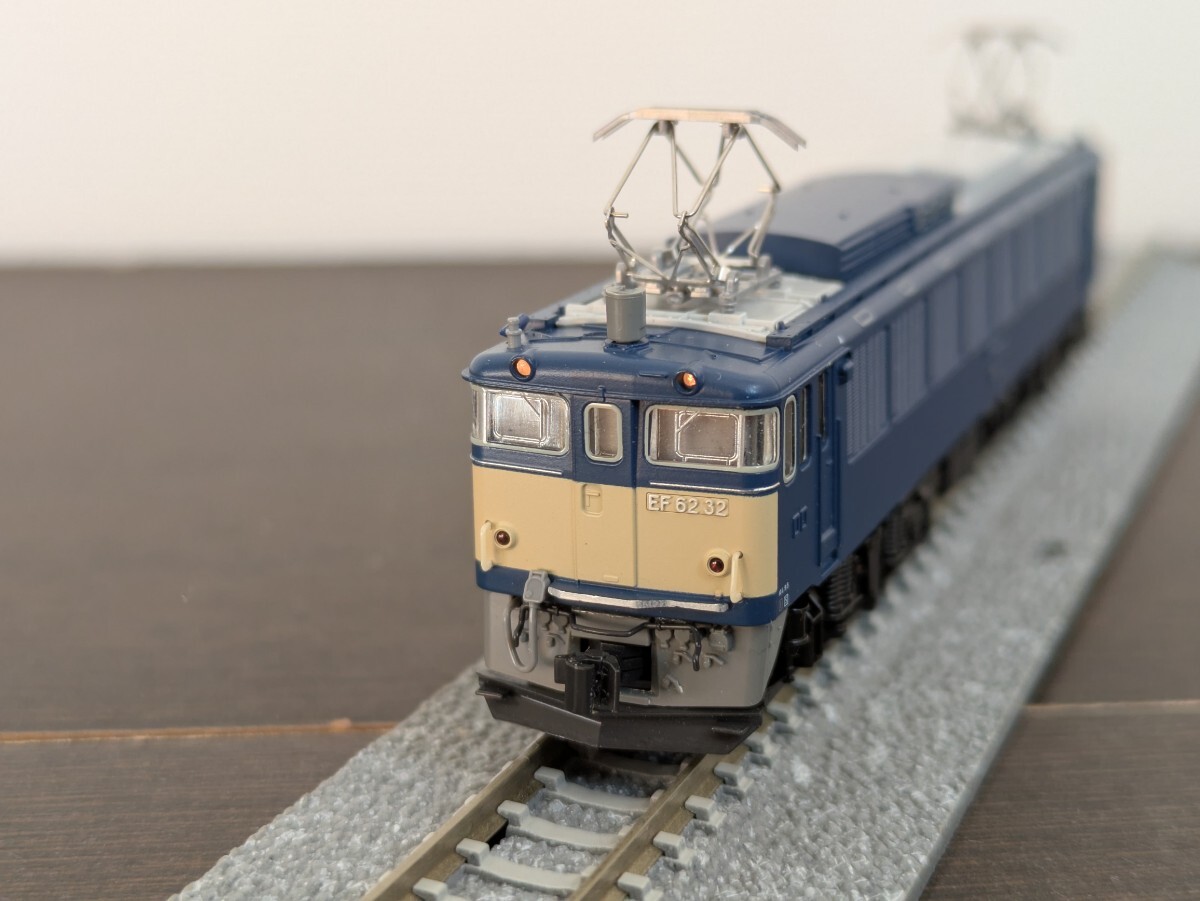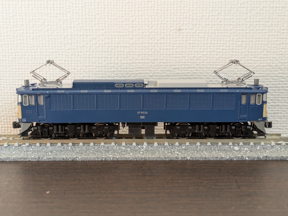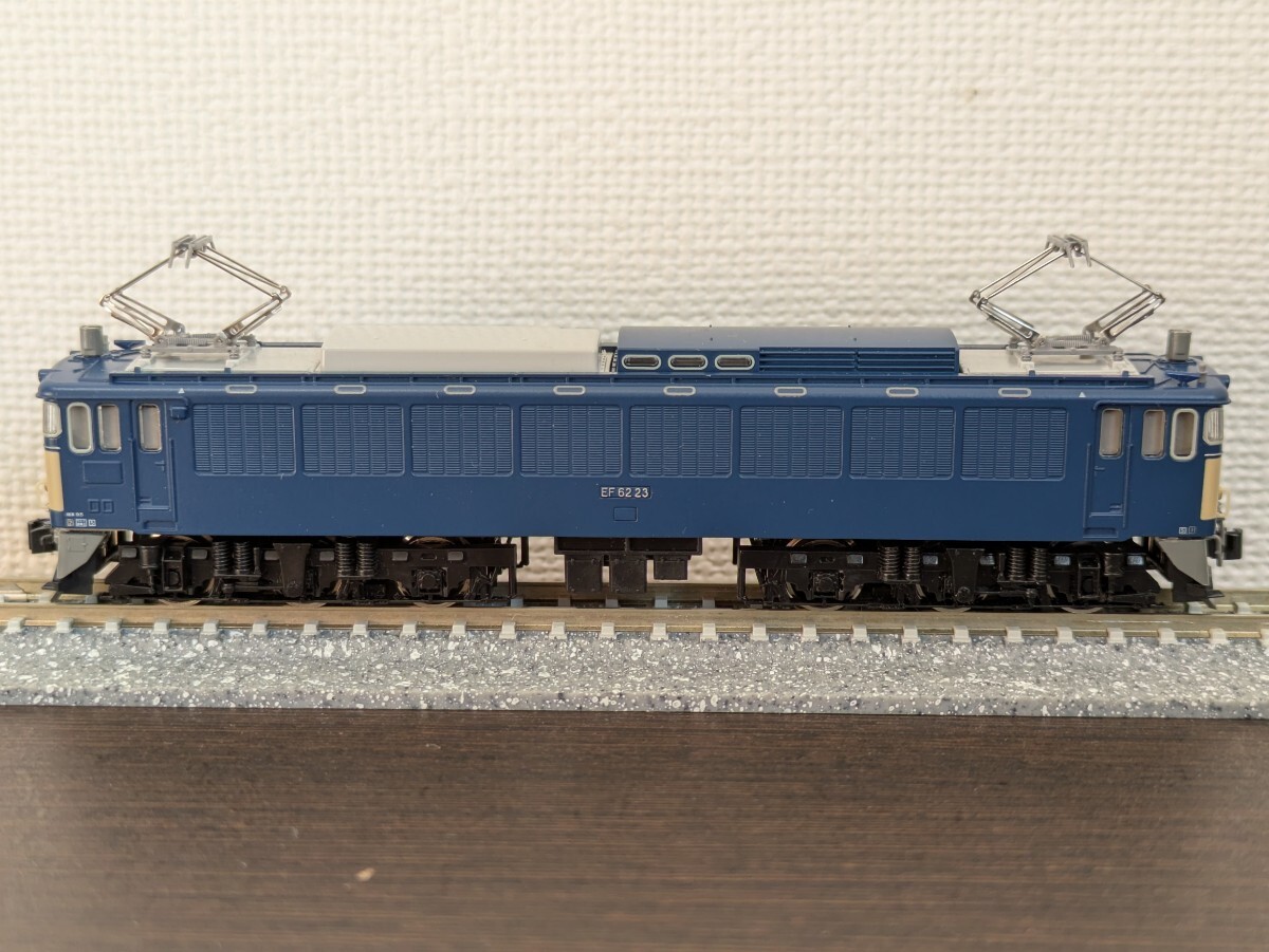 商品名にあるように「KATO 3058-3 EF62 後期形 下関運転所」のボディと「TOMIX 2102 国鉄 EF62形 電気機関車」の動力ユニットを組み合わせた車両になります。