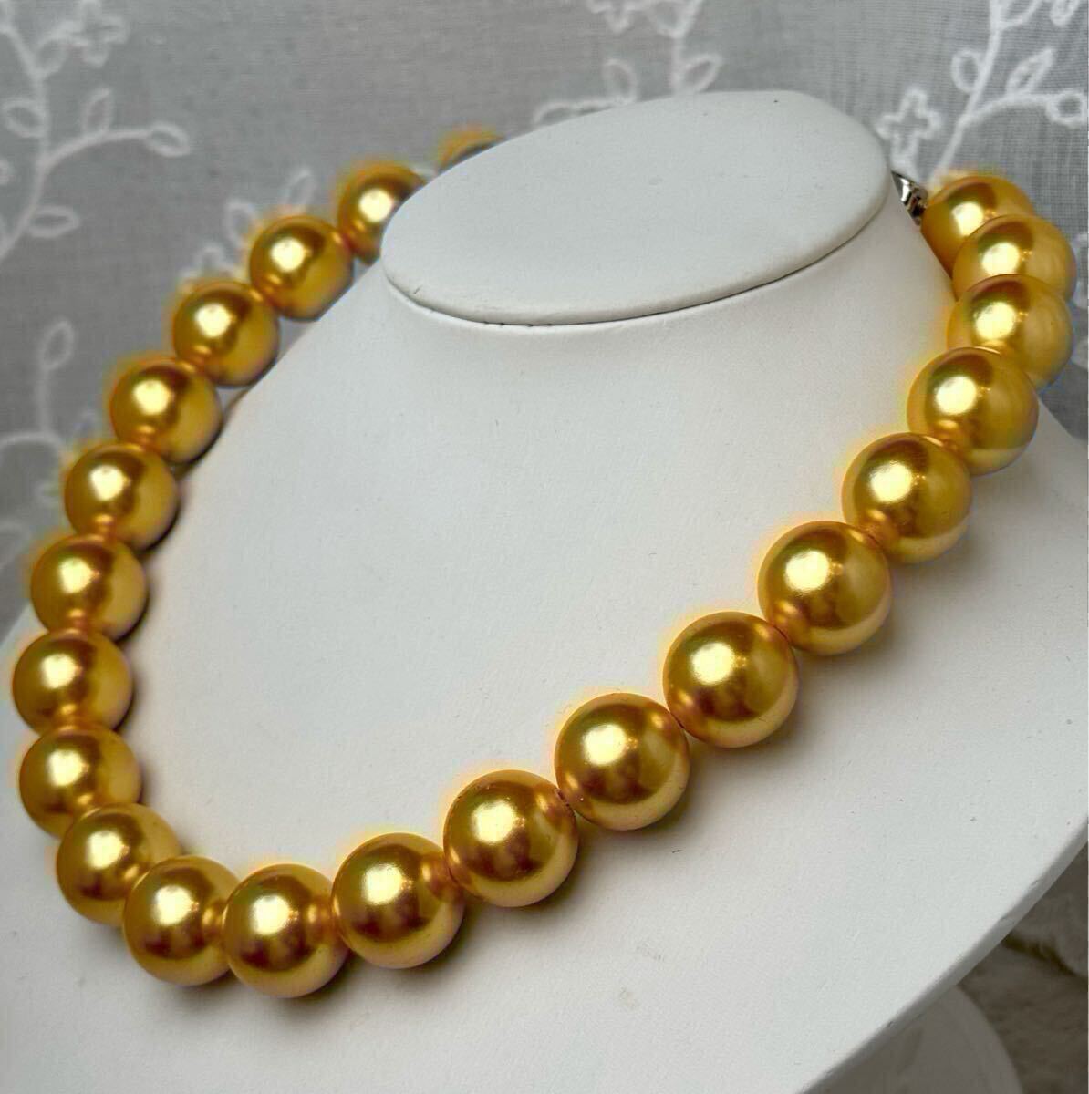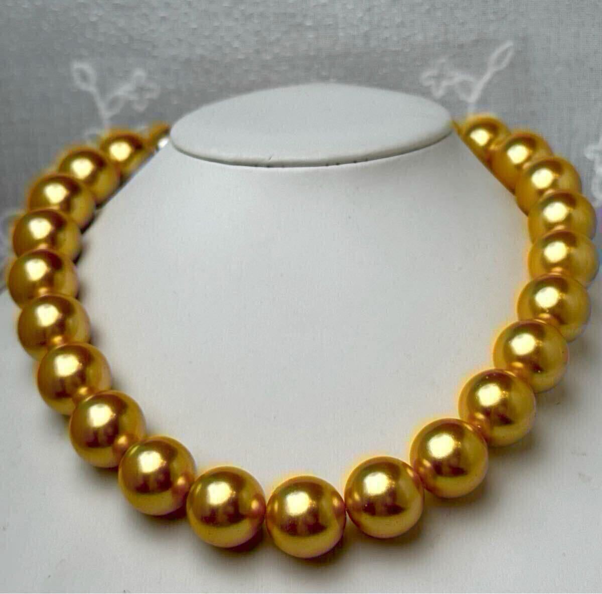 綺麗に輝くゴールデン系 貝パールネックレスです。