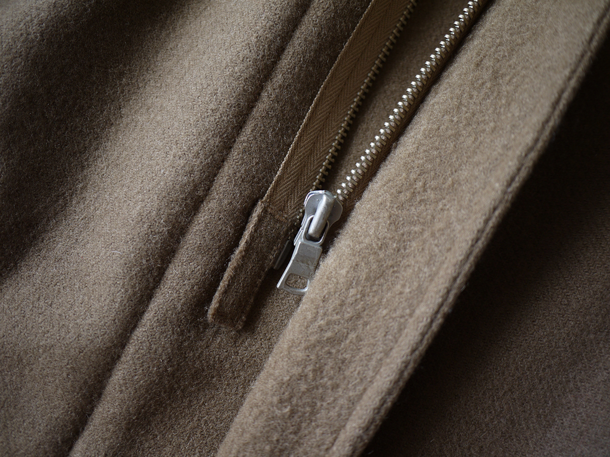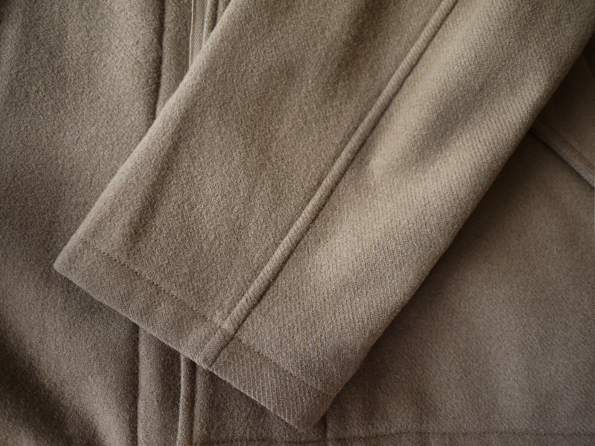 きめ細やかな質感のメルトンウールはふんわりと柔らかく、発色の美しいキャメルカラーが洗練された印象をより際立たせる一見して品質の良さを感じさせる上質なファブリックでございます。