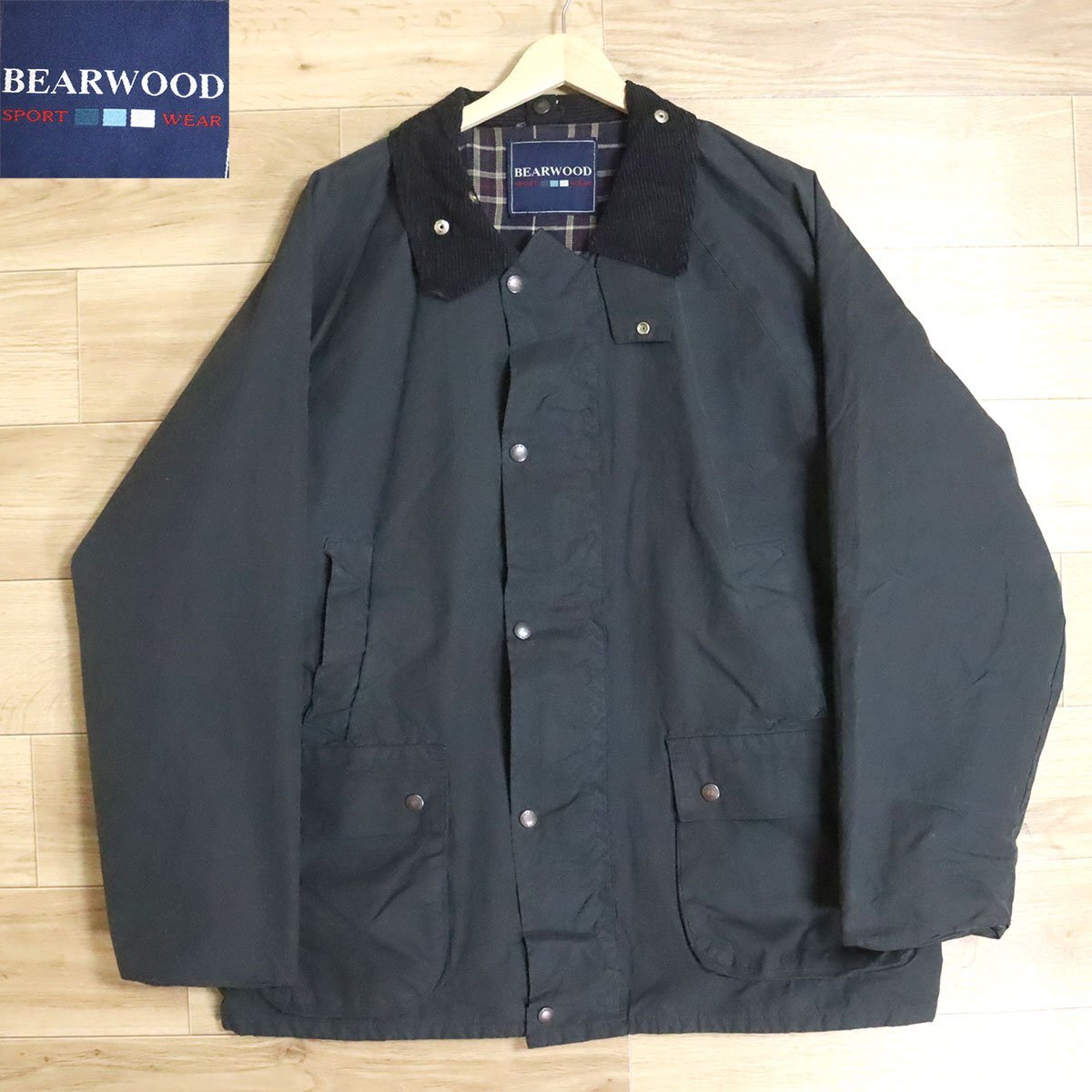 N12K/D10.2-2 ユーロ古着 イングランド製 BEARWOOD オイルドコート オイルドジャケット ハンティングジャケット 襟コーデュロイ