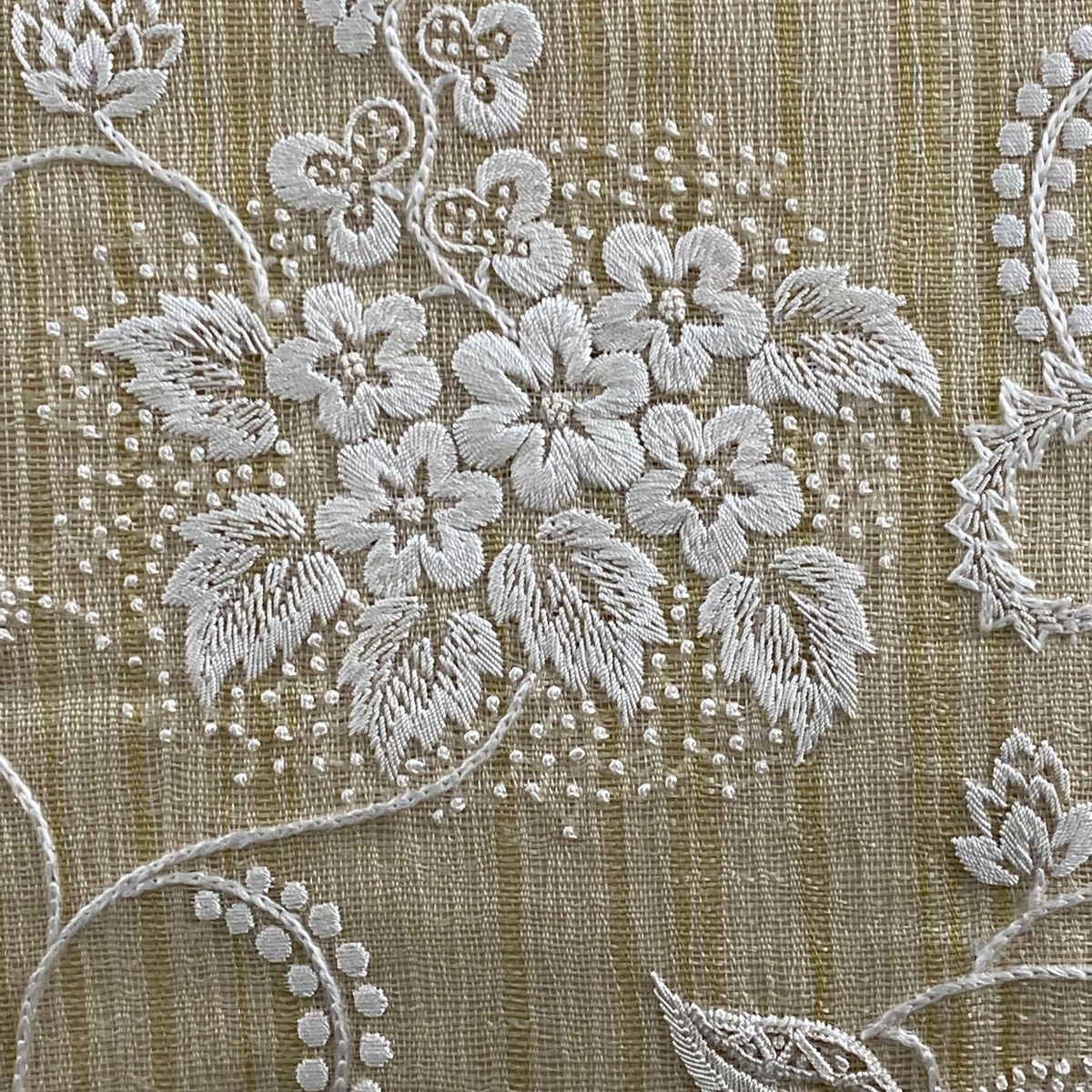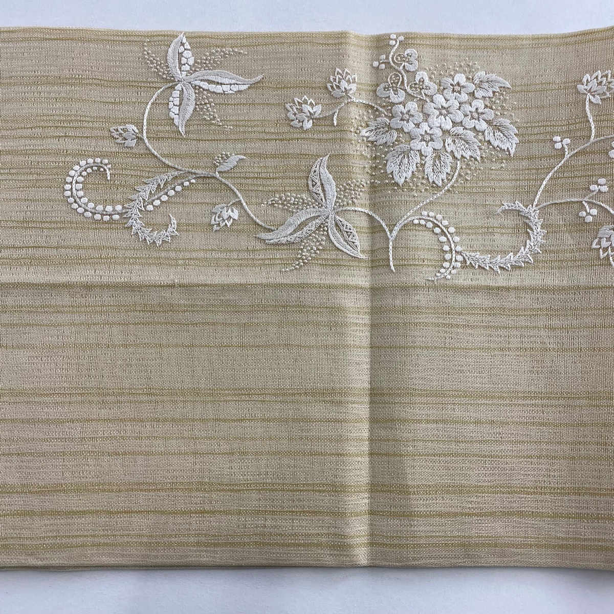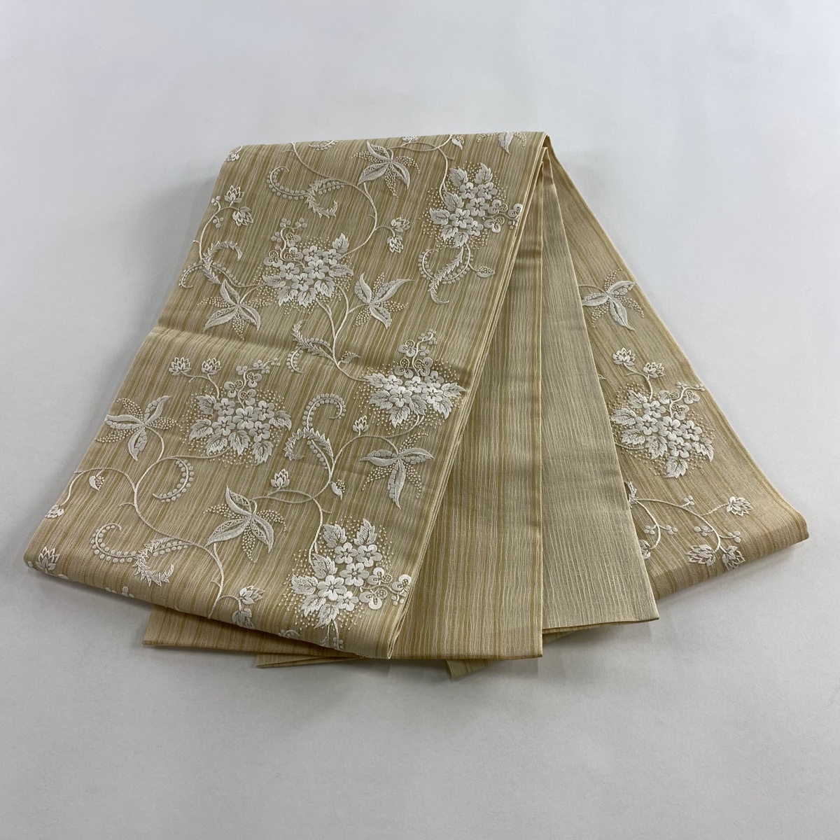 | 袋帯 逸品 夏帯 草花 刺繍 ベージュ お太鼓柄 正絹 【中古】 |