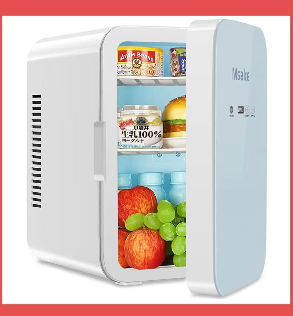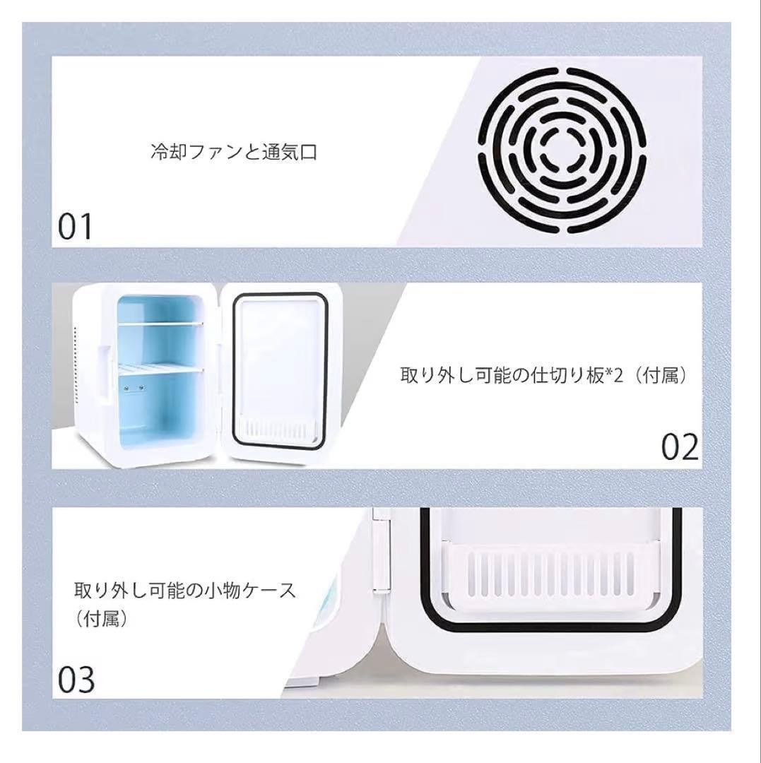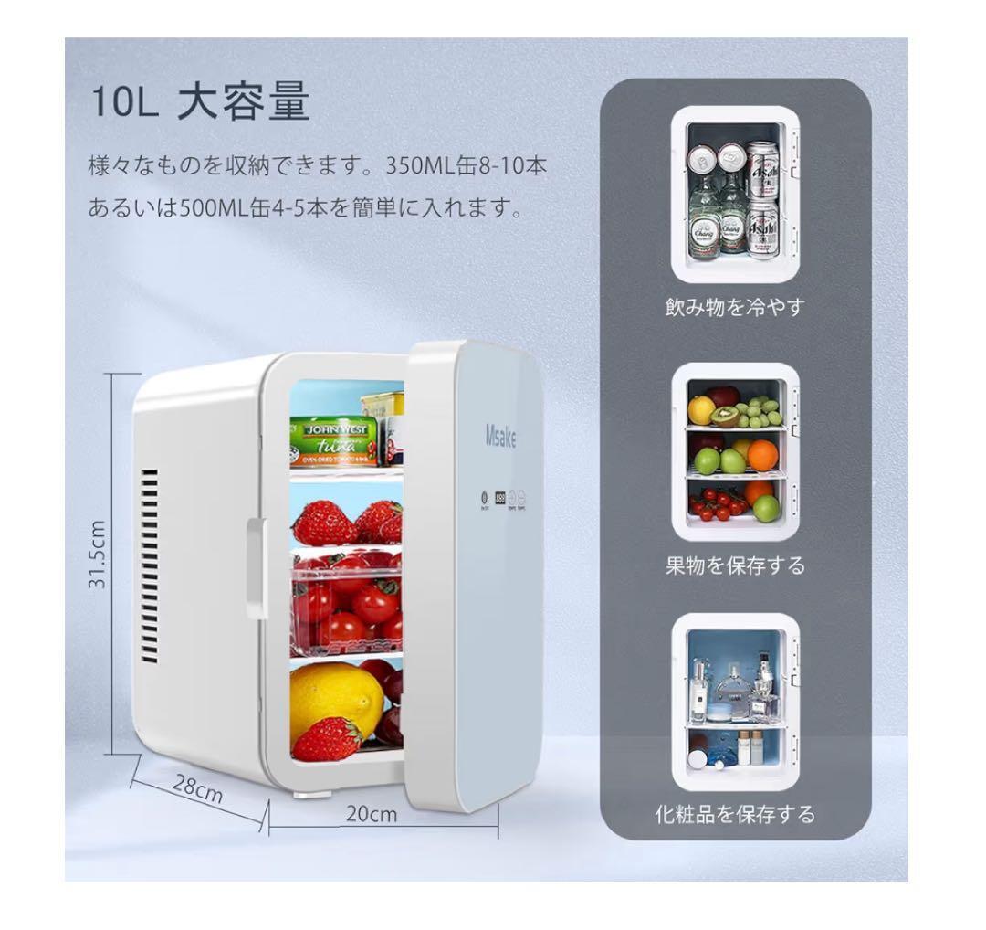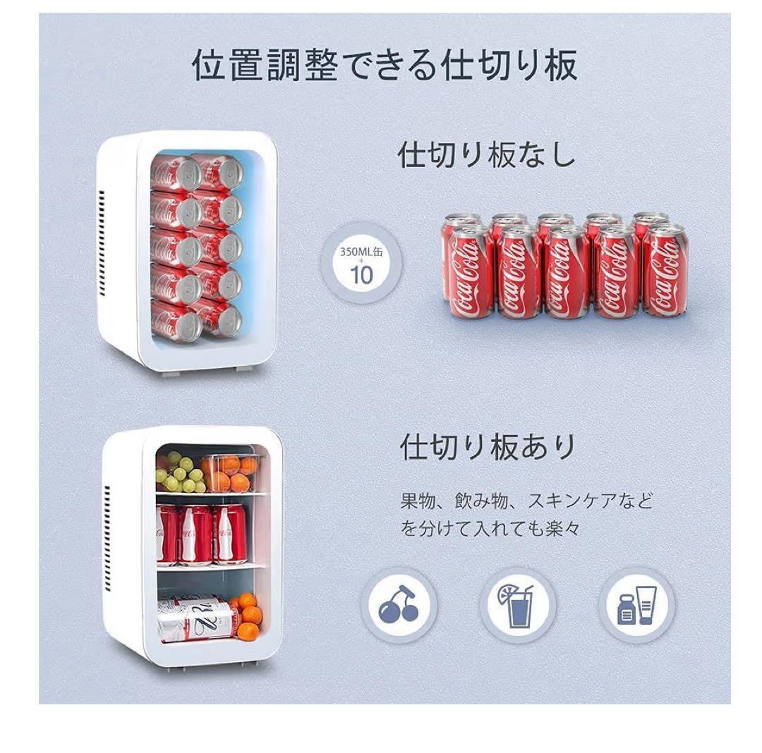 庫内容量は10Lで、350ml缶8-10本あるいは500ml缶4-5本収納可。取り外し可能な仕切り板(2枚付属)を使って、スペースを調節できます。ドアポケット(1枚付属)はお菓子、調味料など小物を収納できます。約3.9KG、後ろにハンドルがあるので、片手で簡単に持ち運びられます。