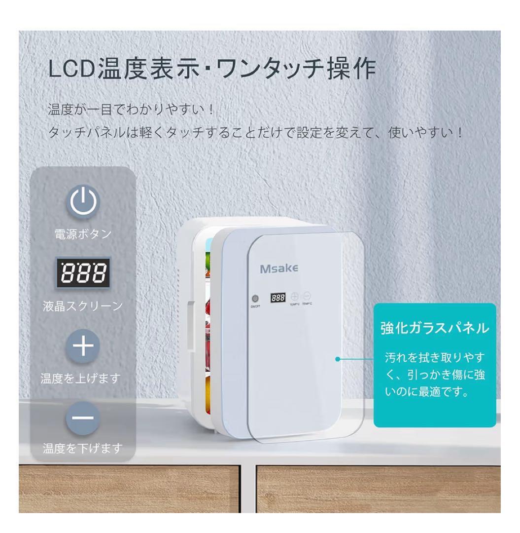 ミニ冷蔵庫の正面部分(タッチパネルを含む)は強化ガラスパネルで設計されて、汚れを拭き取りやすく、引っかき傷に強い。LCDディスプレイを搭載し、温度が一目でわかりやすい。電源キーは短く押すとオンになり、3秒間長押しするとオフになります。電源を入れた後、スイッチキーを押しなくても冷蔵庫小型が自動でにオンなります。ディスプレイの数字が点滅している時は、ワンタッチ温度設定が可能!