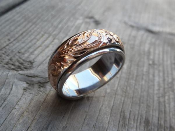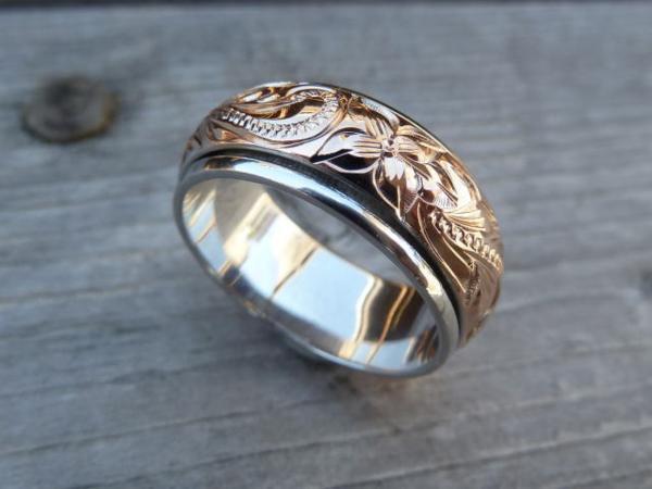 幅8mmピンクゴールドスピンナーリング★ハワイアンジュエリー