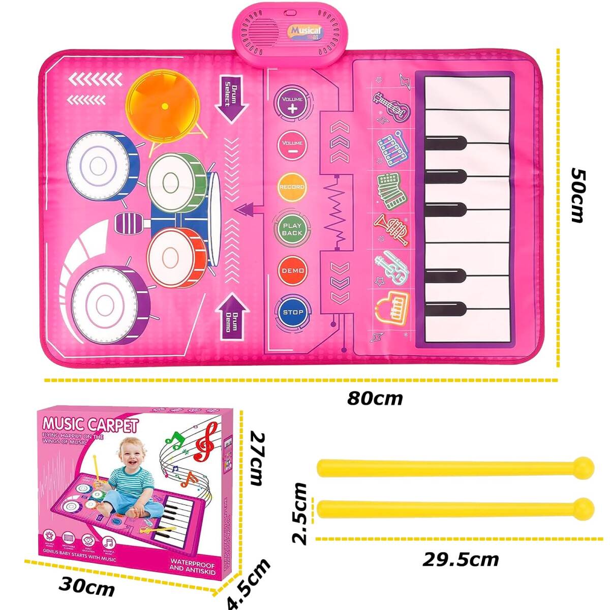 Kabeila ピアノマット おもちゃ ドラムセット 子供 女の子 誕生日 プレゼント 人気 おもちゃ ピアノ 楽器 ミュージックマット 音楽マット 折り畳み 13曲デモ 6種類楽器音 録音・再生機能 防水 滑り止め 知育玩具 女の子 男の子 誕生日 プレゼント クリスマス ギフト