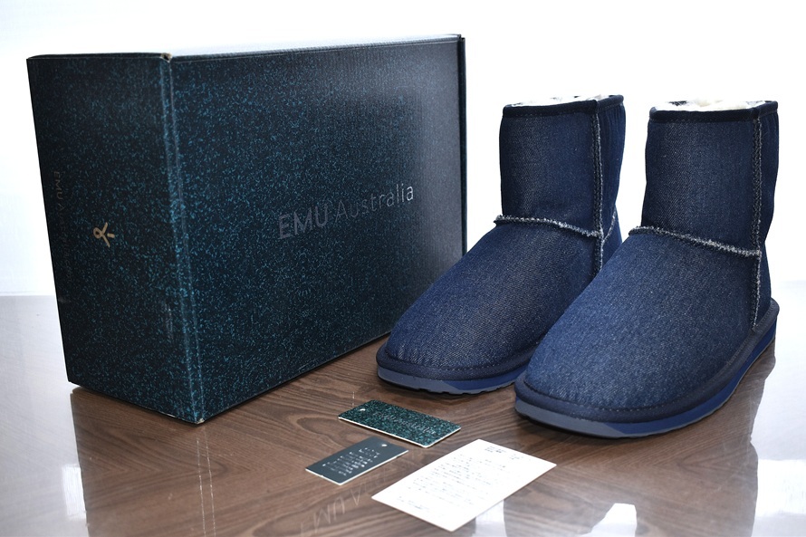 EMU Australia エミューオーストラリア Stinger Denim Mini スティンガー デニム ミニ ムートン ショートブーツ インディゴ 26cm 未使用