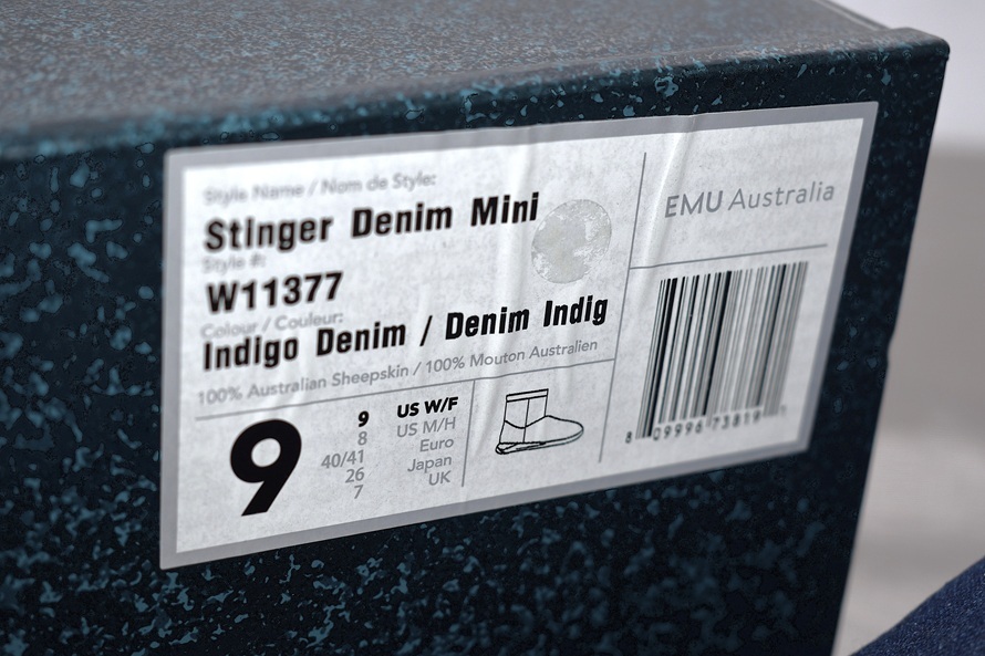 EMU Australia エミューオーストラリア Stinger Denim Mini スティンガー デニム ミニ ムートン ショートブーツ 【インディゴ系/サイズ26cm】です。