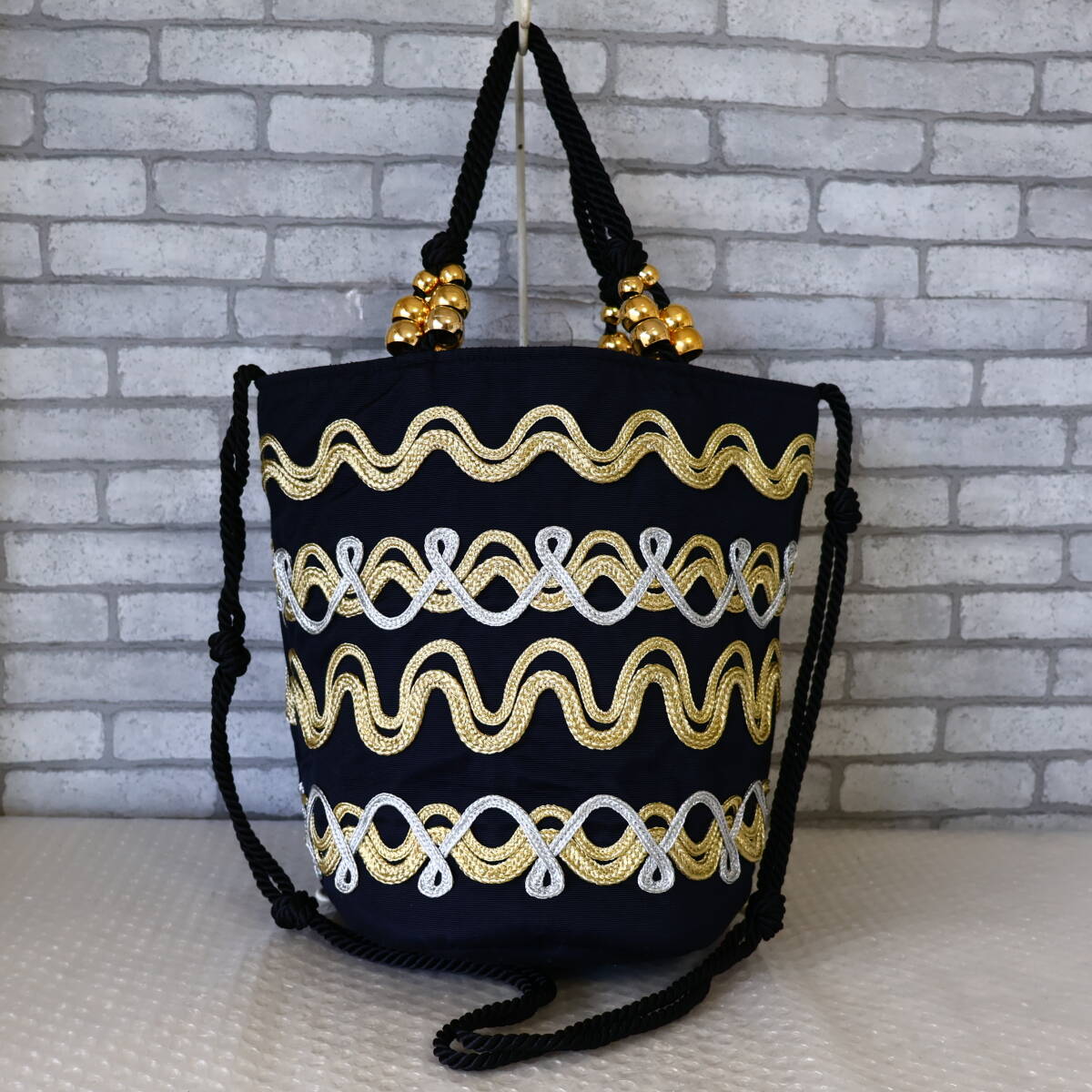 *美品*WAKO/銀座和光/ワコー*モール飾り*2way*トートバッグ*トート*バッグ*黒*